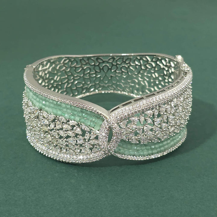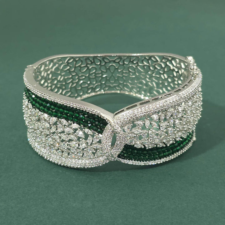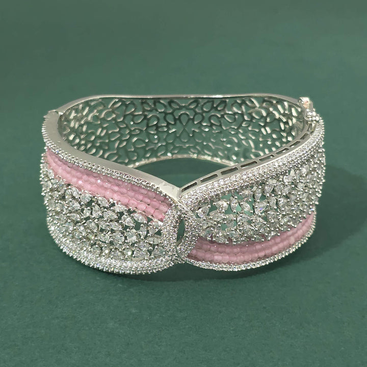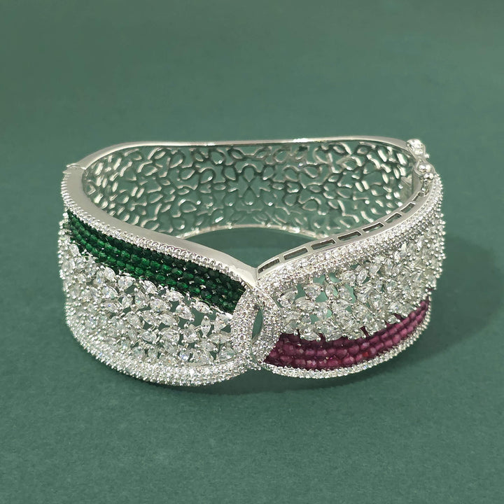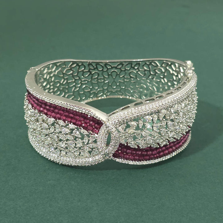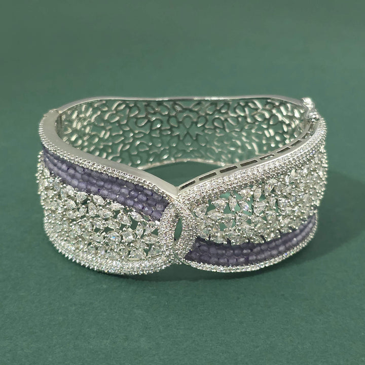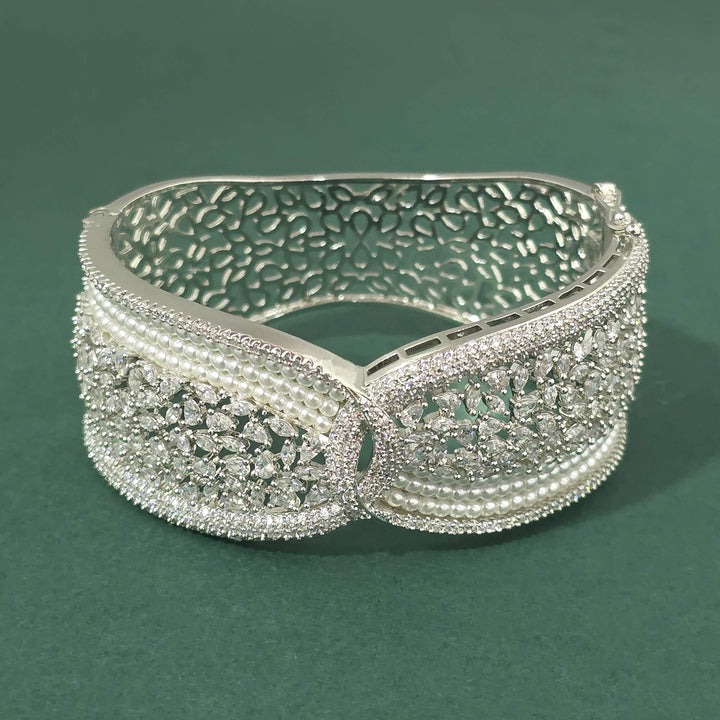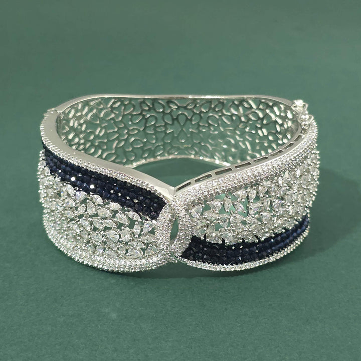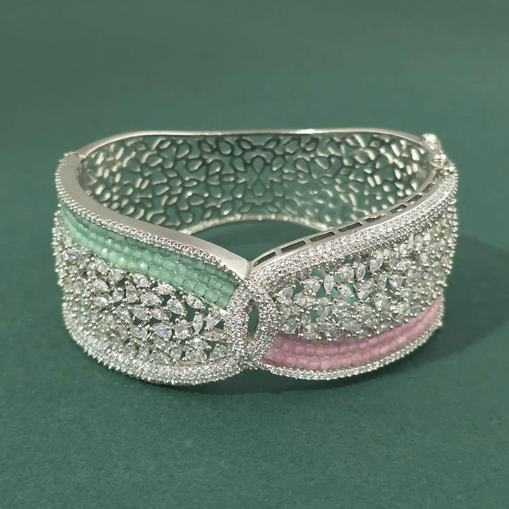 Weight: 43.0 Grams, Height = 48 mm || Width = 57 mm,Broad Kada,Openable Kada,Rhodium Plating,American Diamond Kada