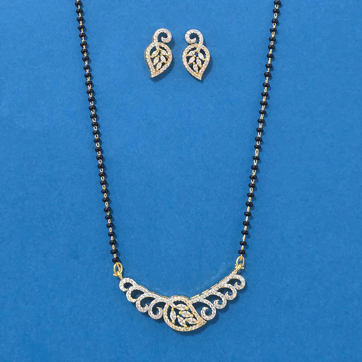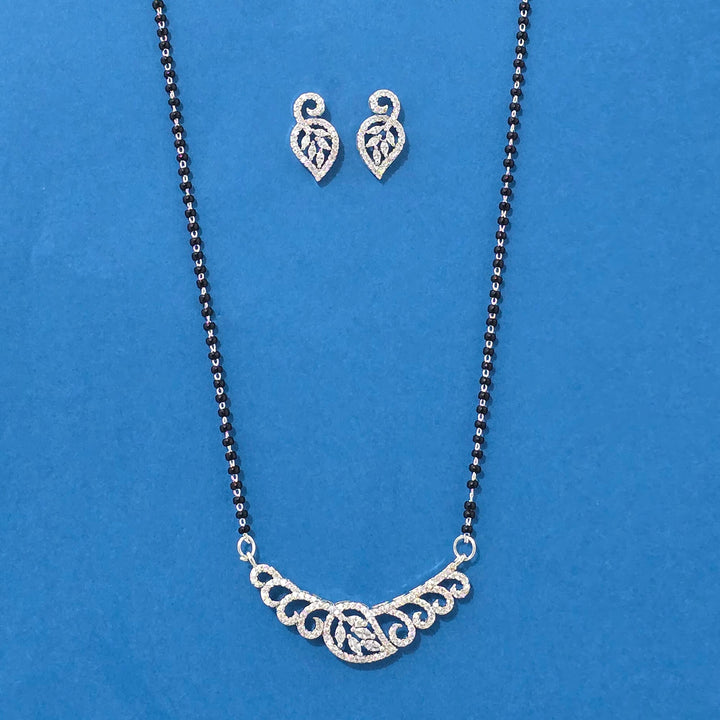 Weight: 12.0 Grams, Pendant Height = 11 mm || Width = 42 mm,Earring Height = 20 mm || Width = 10 mm,Length = 18 Inch,2 Tone Plating,Rhodium Plating,American Diamond Mangal Sutra