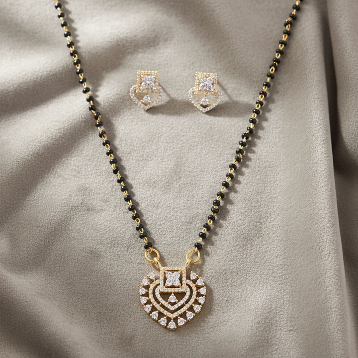 Weight: 12.0 Grams, Pendant Height = 19 mm || Width = 20 mm,Earring Height = 13 mm || Width = 11 mm,Chain - 18 Inch,2 Tone Plating,Rhodium Plating,American Diamond Mangal Sutra