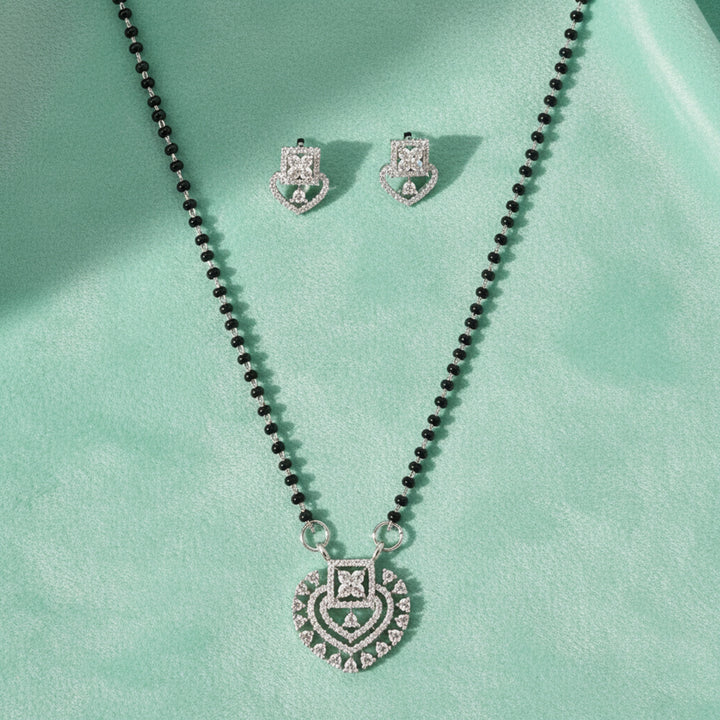 440802 Cz Classic Mangalsutra With 2 Tone Rhodium Plating