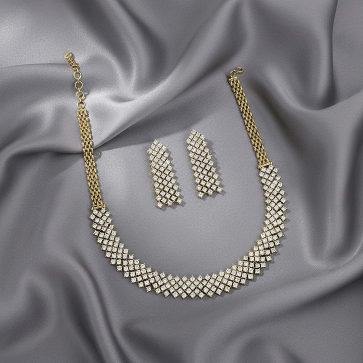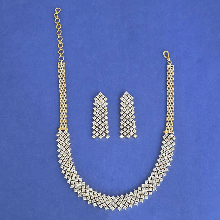 441698 Cz Classic Necklace Set Set With 2 Tone Mehndi Rhodium Plating