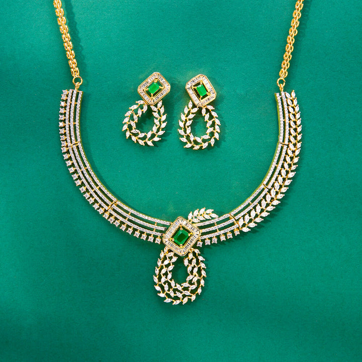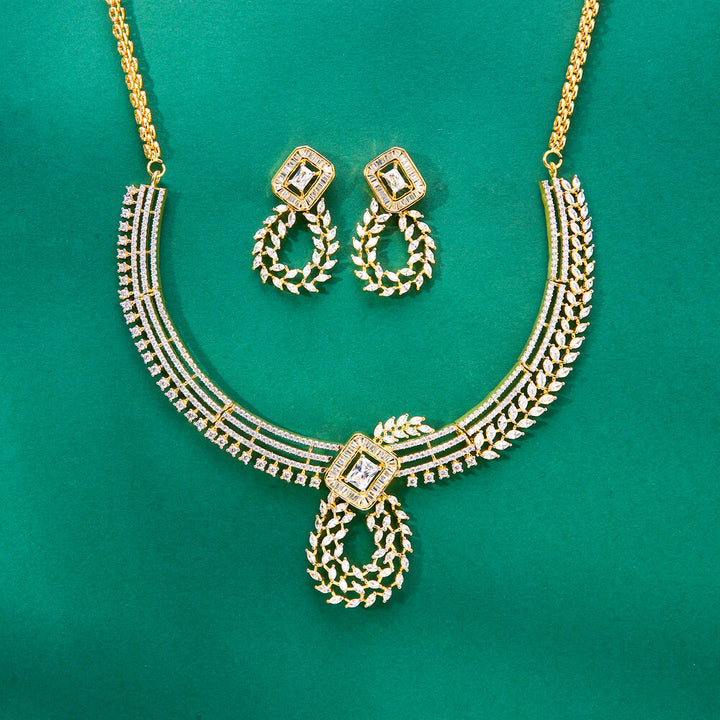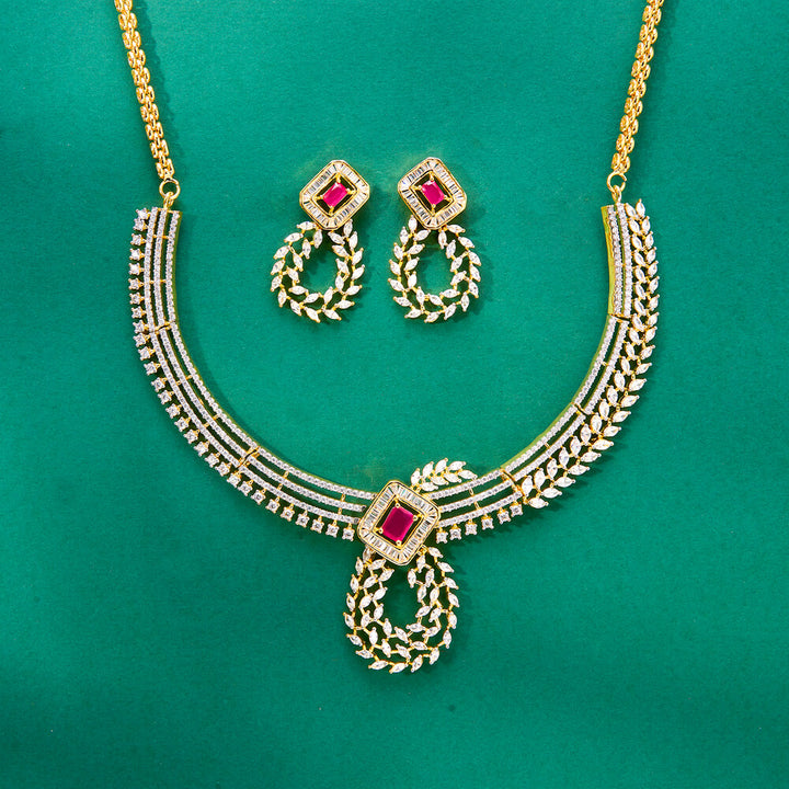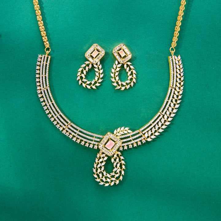 436940 Cz Classic Necklace Set With 2 Tone Plating