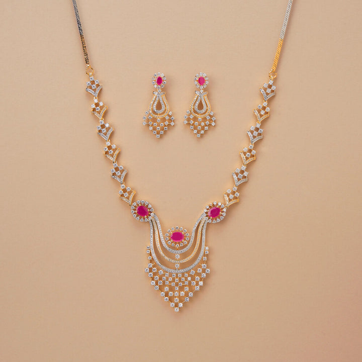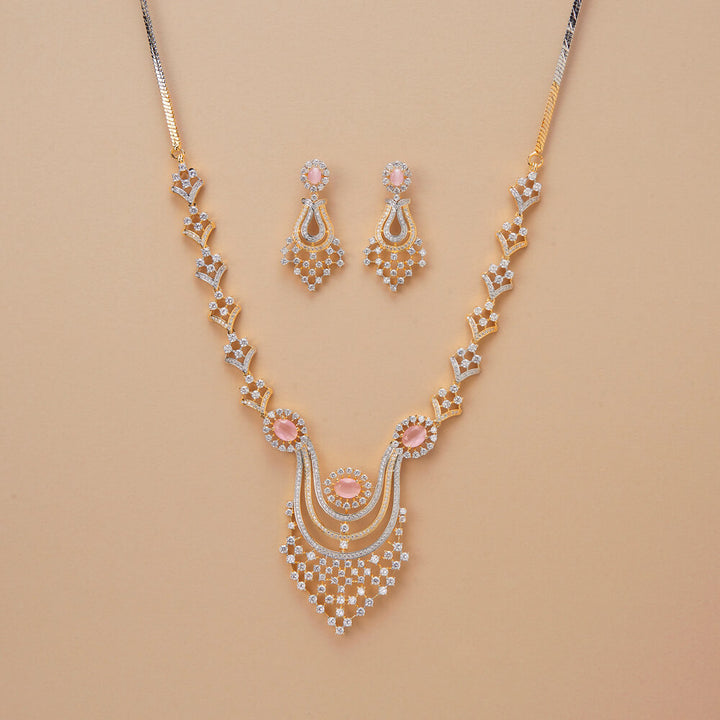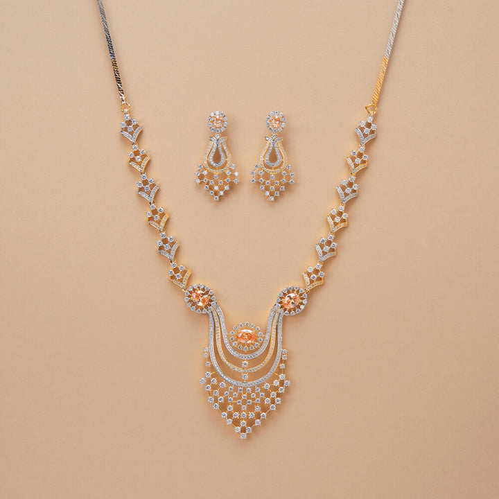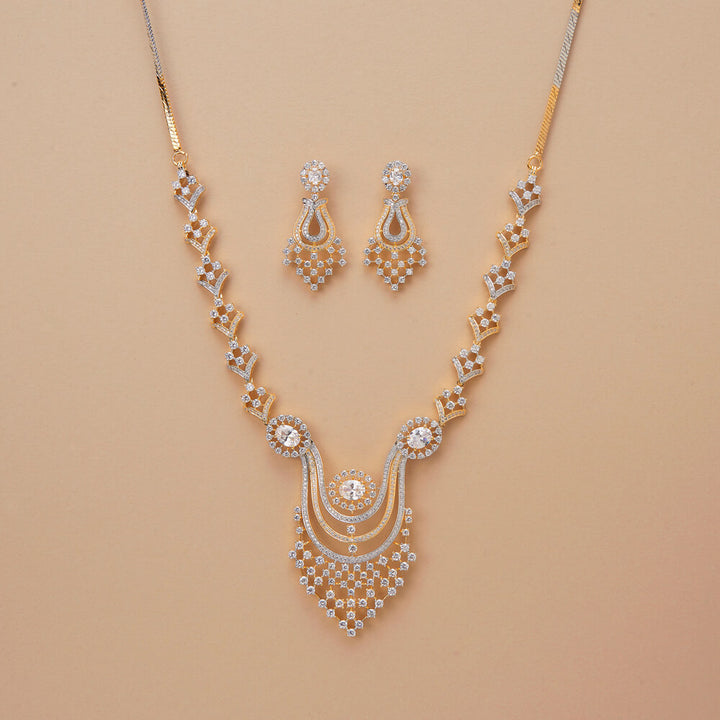 437185 Cz Classic Necklace Set With 2 Tone Plating