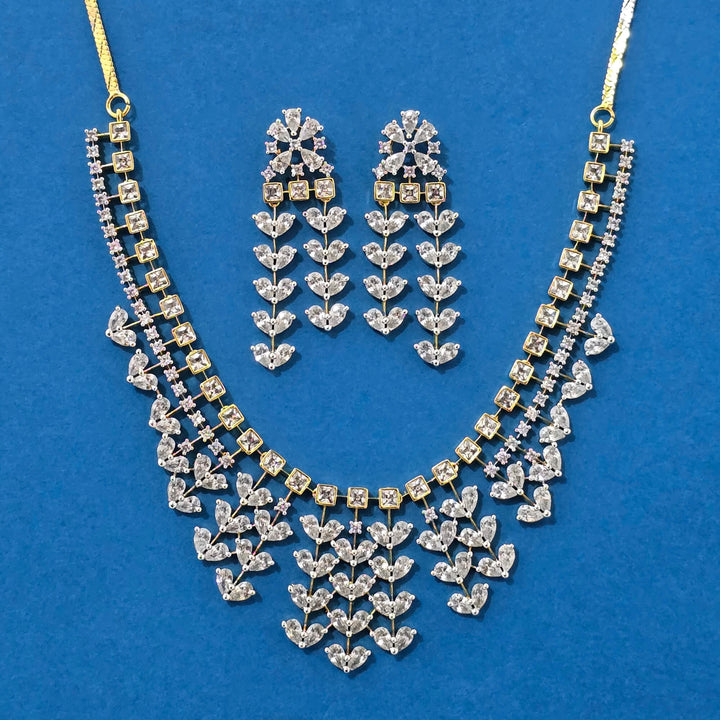 440238 Cz Classic Necklace Set With 2 Tone Plating