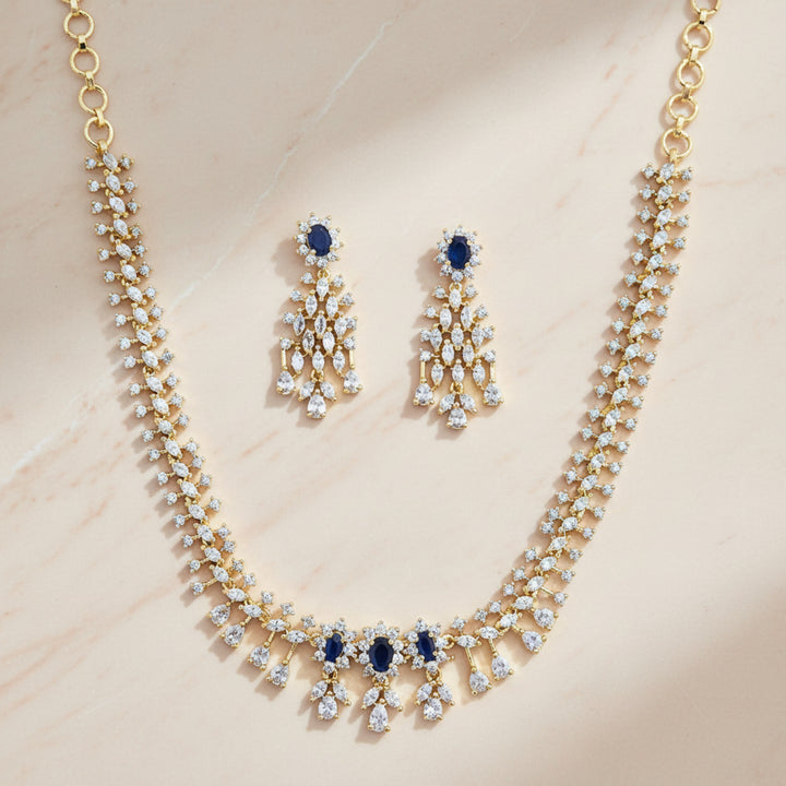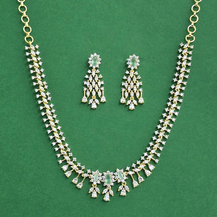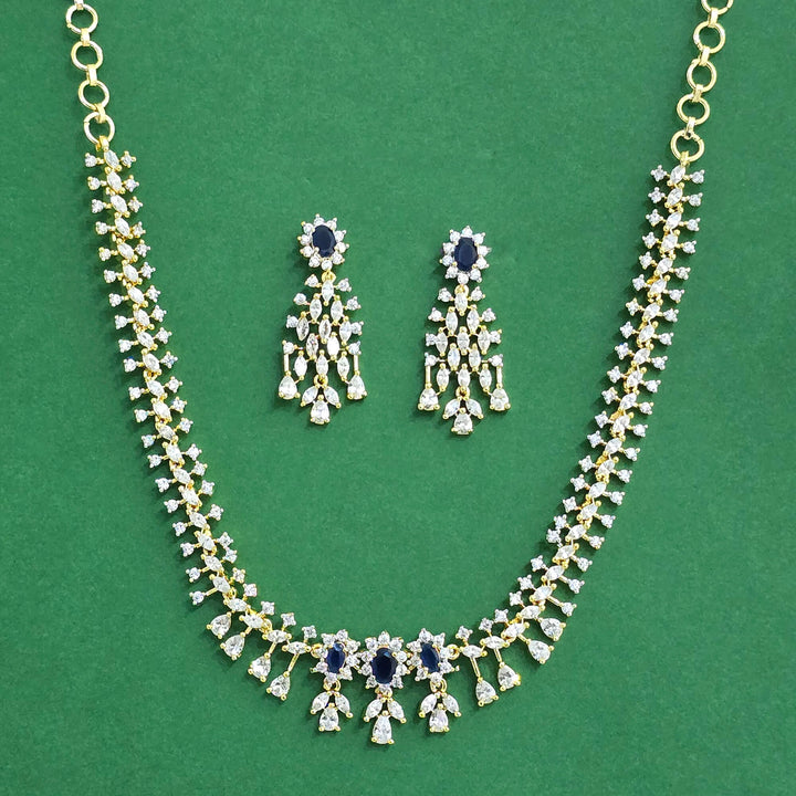 Weight: 37.0 Grams, Earring Height = 35 mm || Width = 15 mm,Regular Size And Adjustable,Latest Design,2 Tone Plating,American Diamond Necklace Set