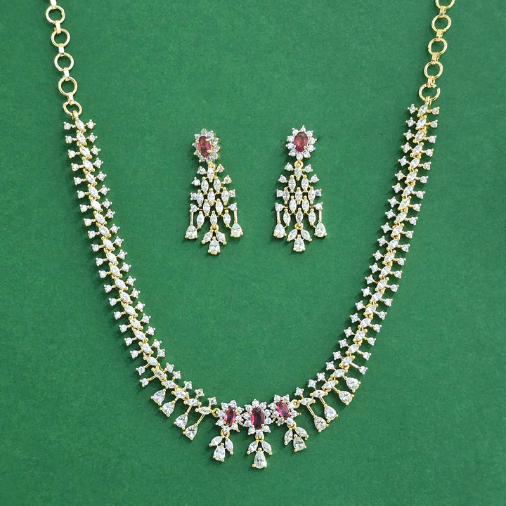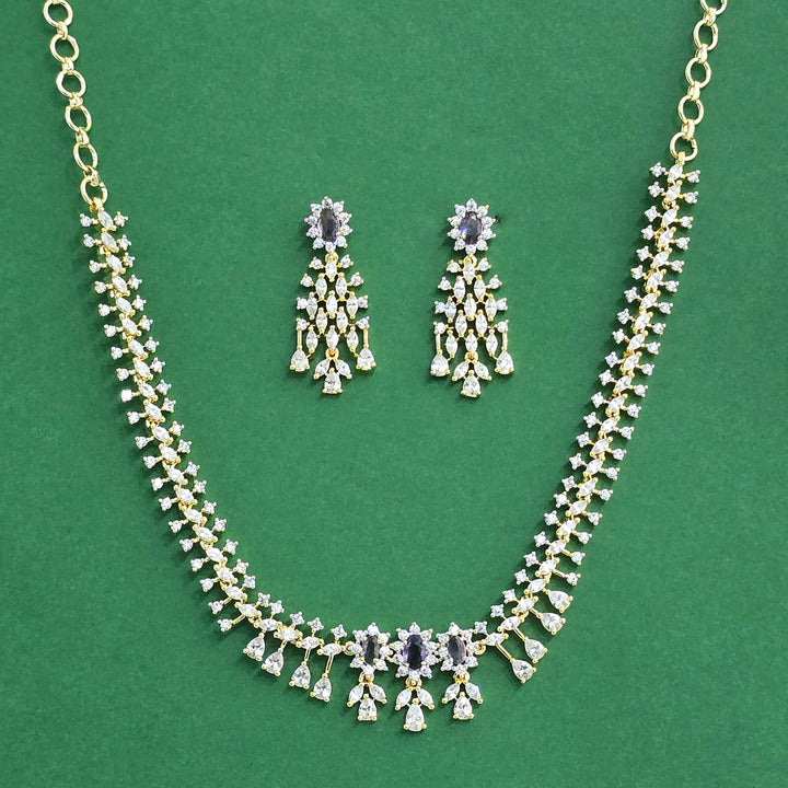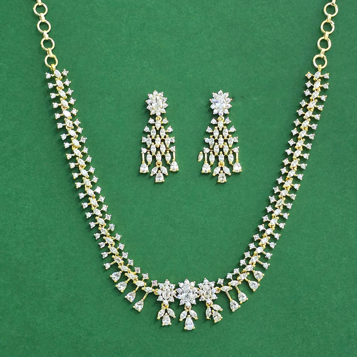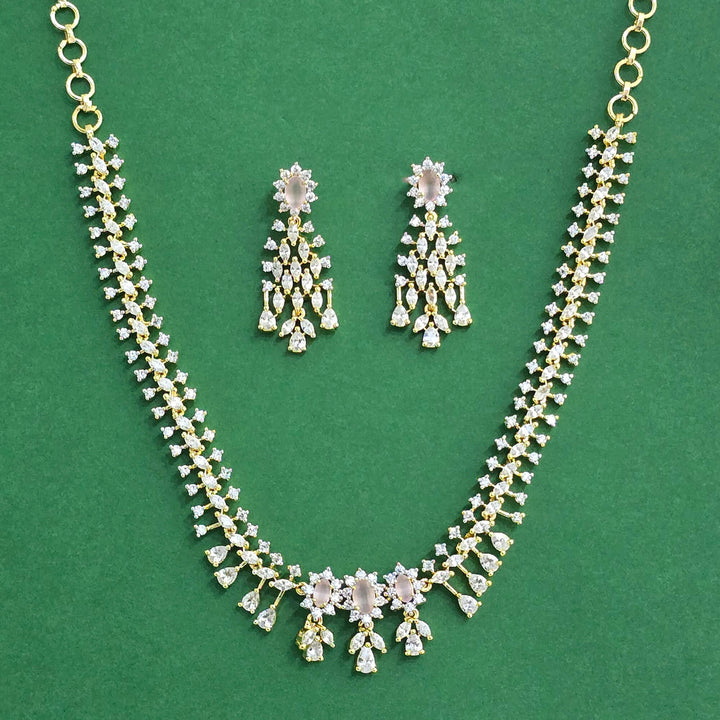 440970 Cz Classic Necklace Set With 2 Tone Plating