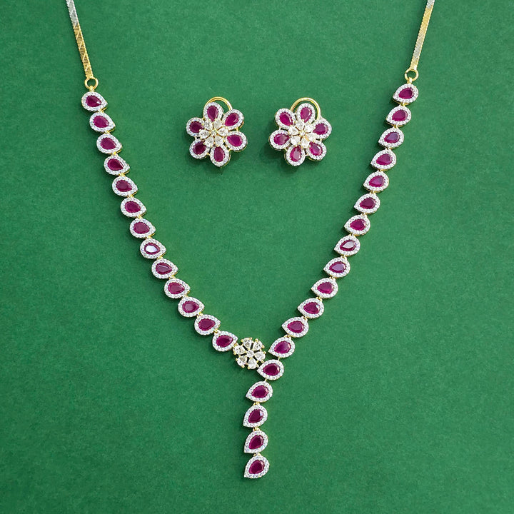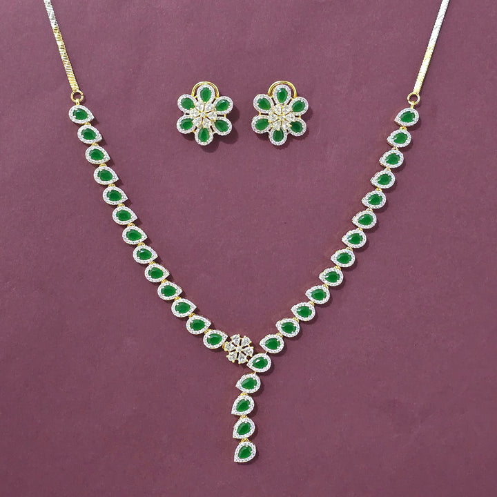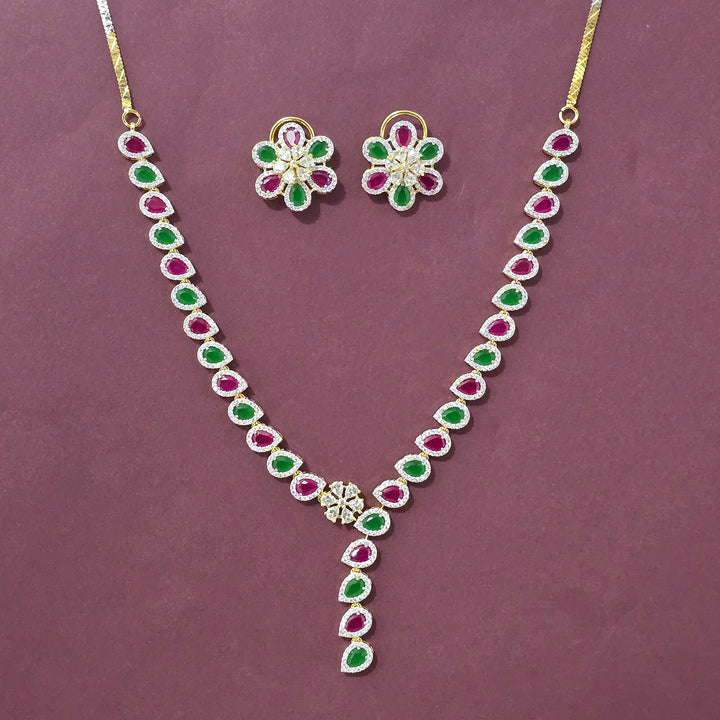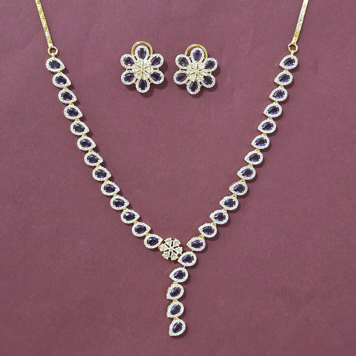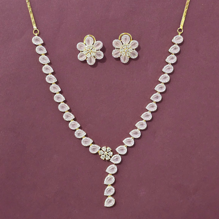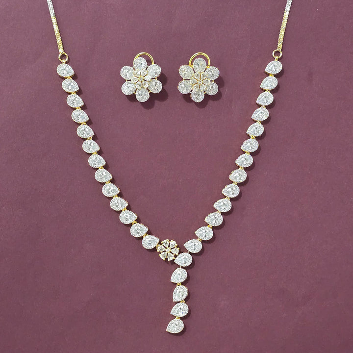 441111 Cz Classic Necklace Set With 2 Tone Plating