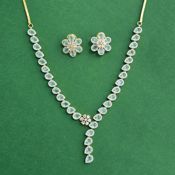 Weight: 35.0 Grams, Earring Height = 23 mm || Width = 23 mm,Regular Size And Adjustable,Latest Design,2 Tone Plating,American Diamond Necklace Set