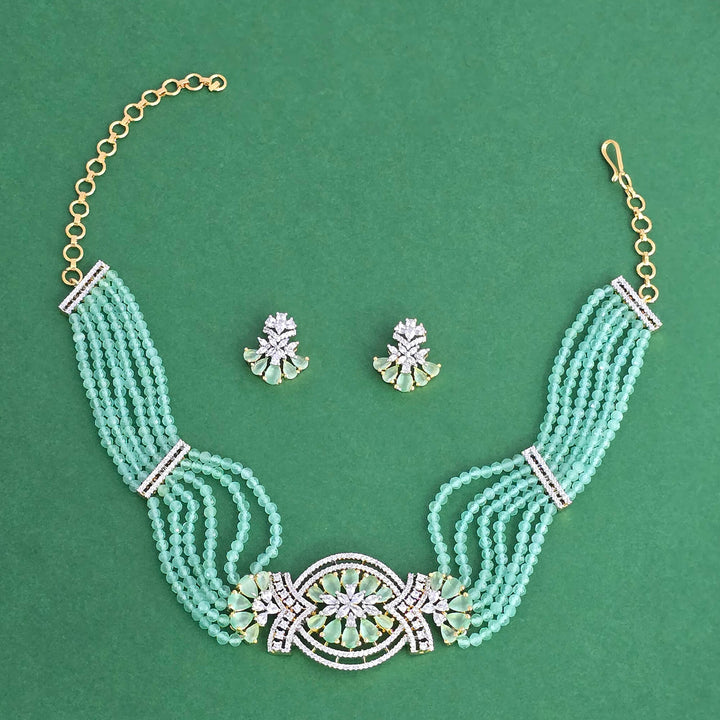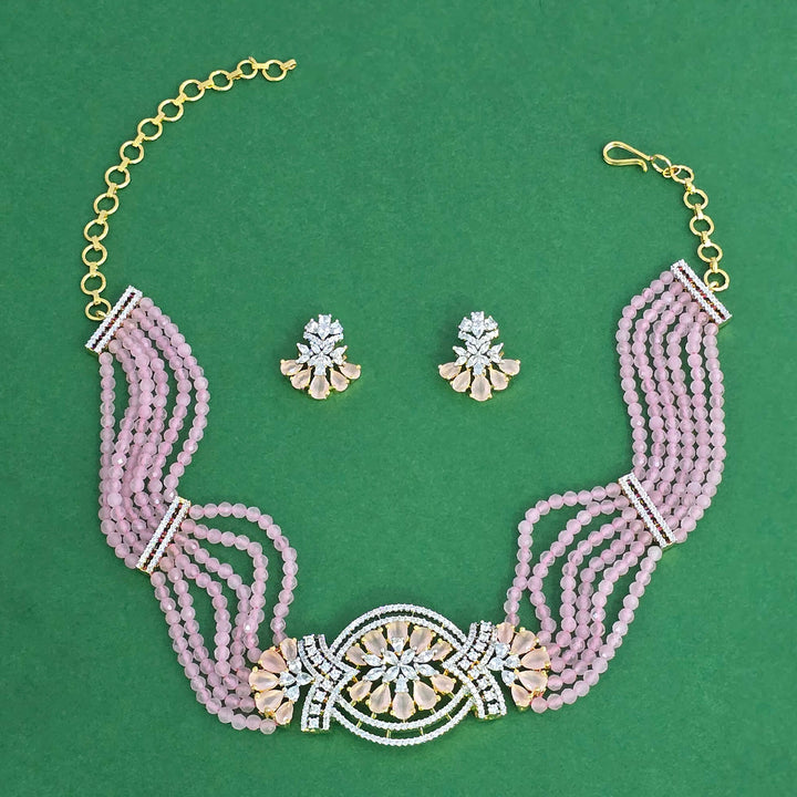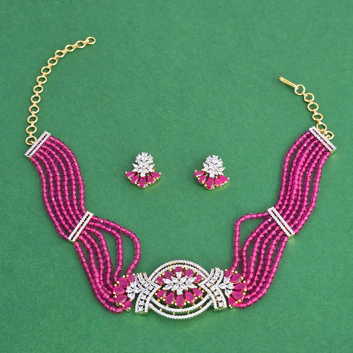 Weight: 43.0 Grams, Earring Height = 20 mm || Width = 17 mm,Regular Size And Adjustable,Choker Necklace,2 Tone Plating,American Diamond Necklace Set