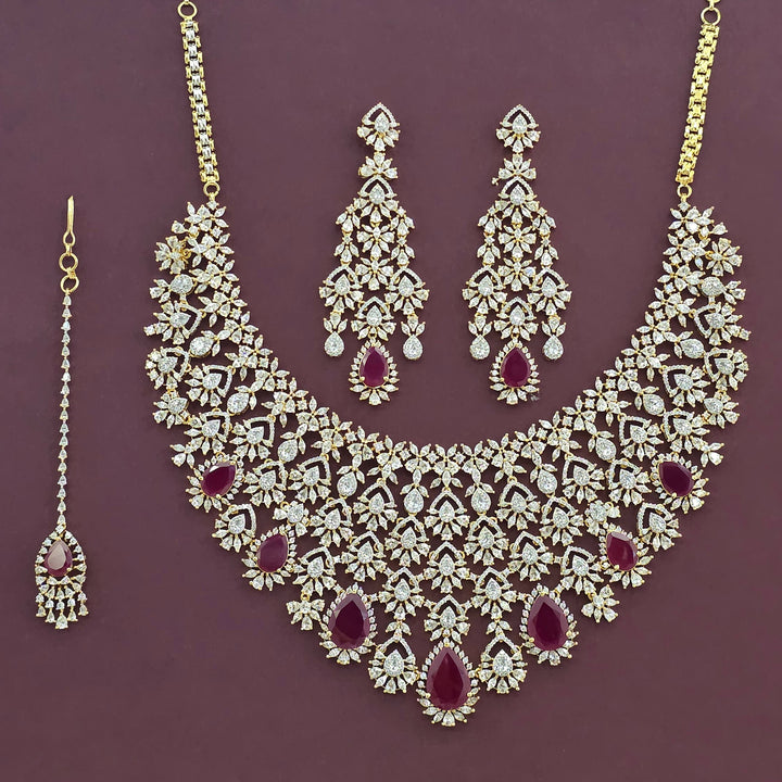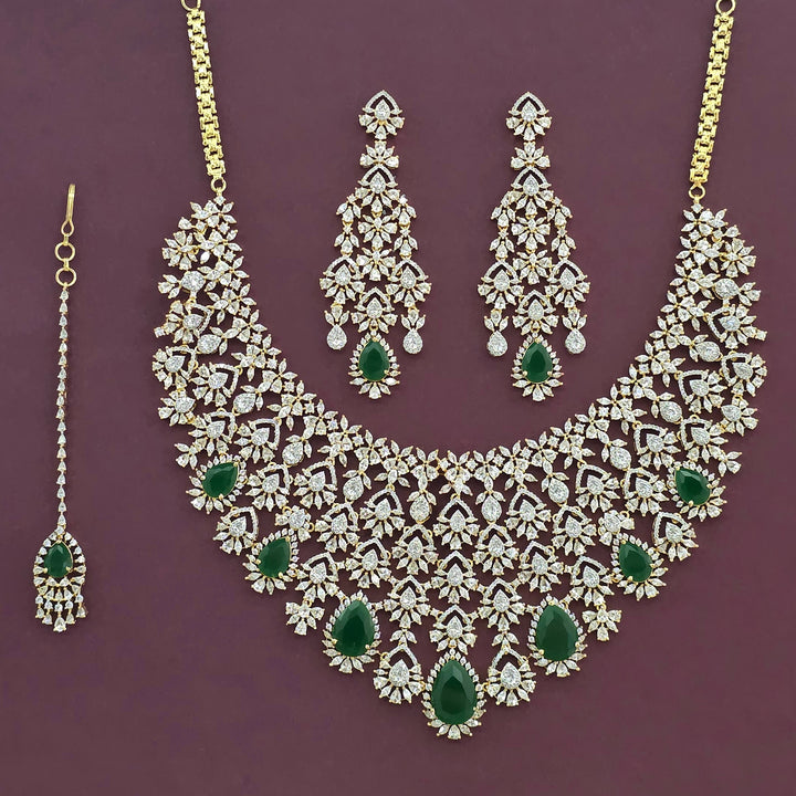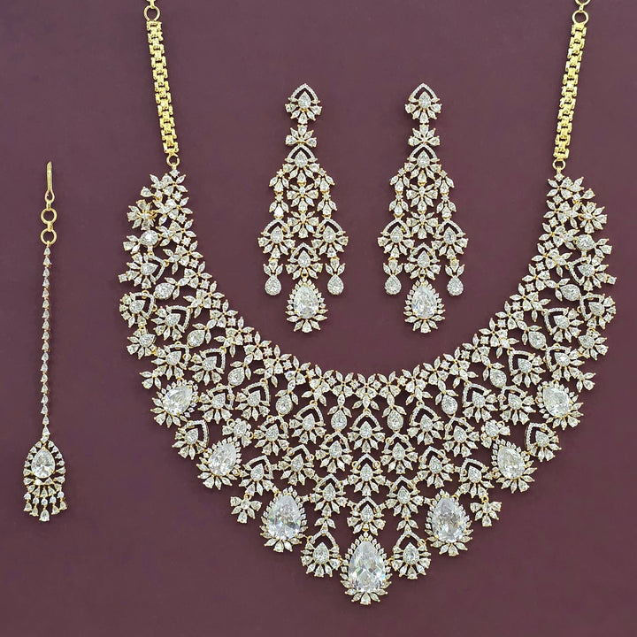 Weight: 185.0 Grams, Earring Height = 90 Mm || Width = 33 Mm,Regular Size 12 Inches With Adjustable Option,2 Tone Plating,American Diamond Necklace Set