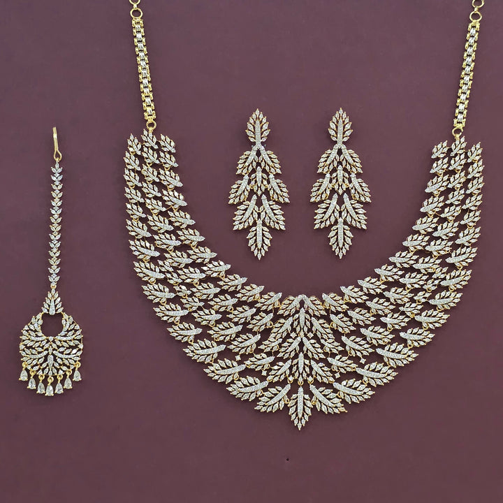 442068 Cz Classic Necklace Set With 2 Tone Plating