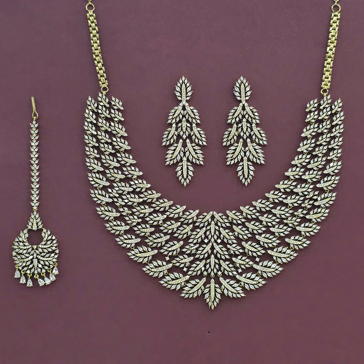Weight: 140.0 Grams, Earring Height = 70 Mm || Width = 28 Mm,Regular Size 12 Inches With Adjustable Option,2 Tone Plating,American Diamond Necklace Set