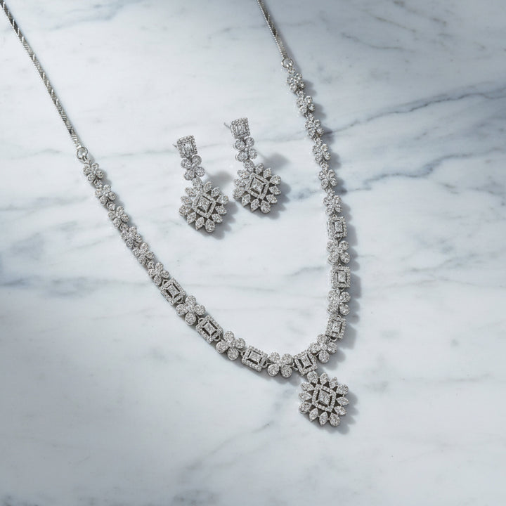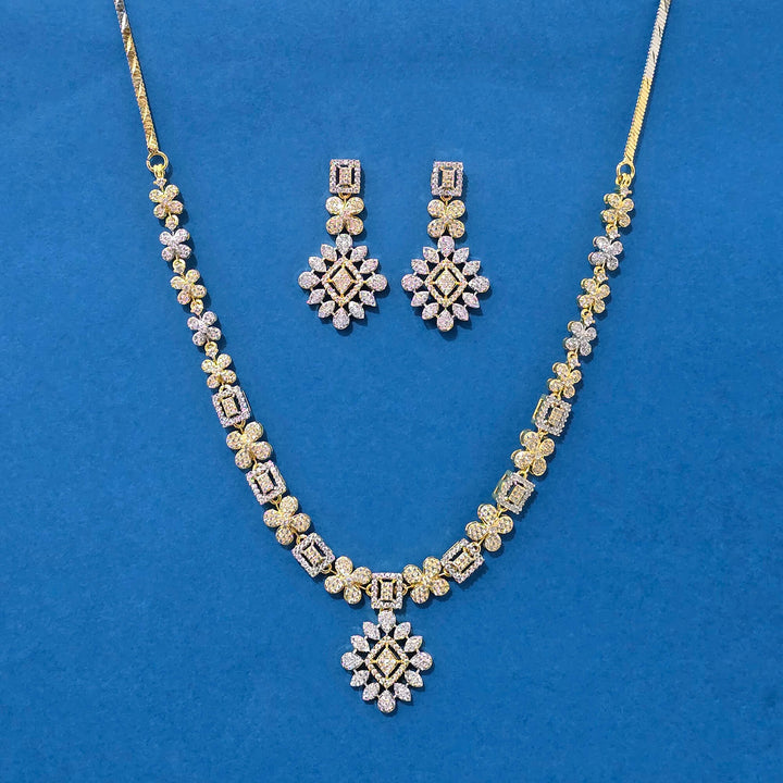 439975 Cz Classic Necklace Set With 2 Tone Rhodium Plating