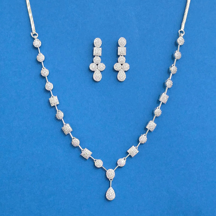 Weight: 26.0 Grams, Earring Height = 33 mm || Width = 12 mm,Regular Size And Adjustable,Elegant Look,2 Tone Plating,Rhodium Plating,American Diamond Necklace Set