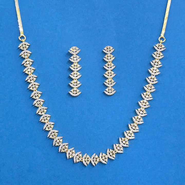 Weight: 28.0 Grams, Earring Height = 38 mm || Width = 10 mm,Regular Size And Adjustable,Delicate Necklace,2 Tone Plating,Rhodium Plating,American Diamond Necklace Set