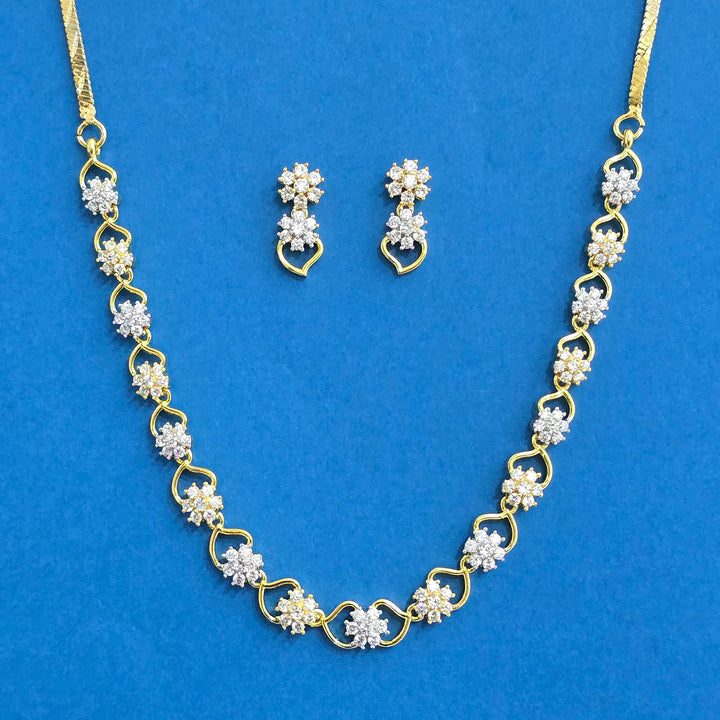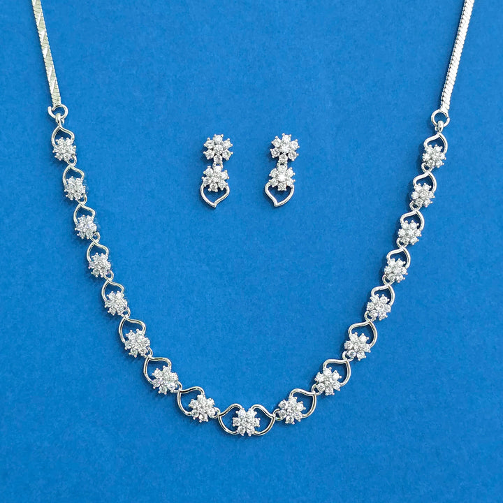 Weight: 22.0 Grams, Earring Height = 20 mm || Width = 8 mm,Regular Size And Adjustable,Delicate Necklace,2 Tone Plating,Rhodium Plating,American Diamond Necklace Set