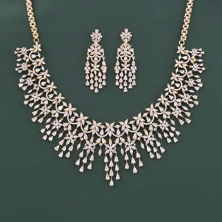 441738 Cz Classic Necklace Set With 2 Tone Rhodium Plating