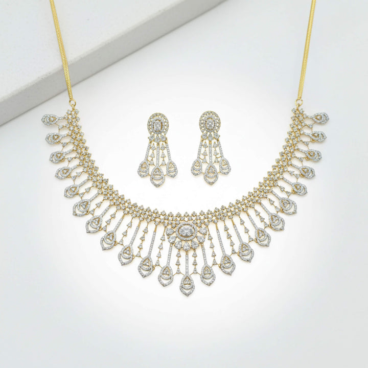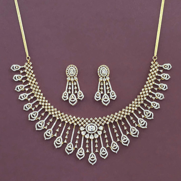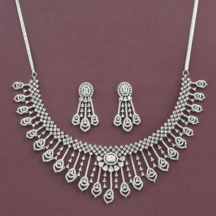 Weight: 67.0 Grams, Earring Height = 44 Mm || Width = 24 Mm,Regular Size And Adjustable,Trendy Look,2 Tone Plating,Rhodium Plating,American Diamond Necklace Set