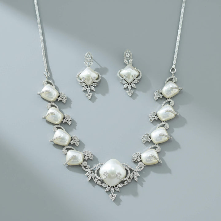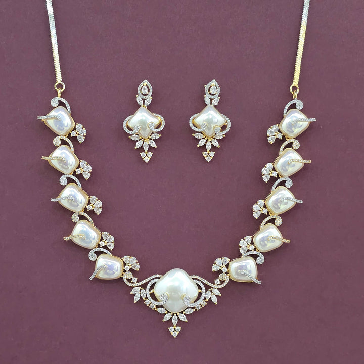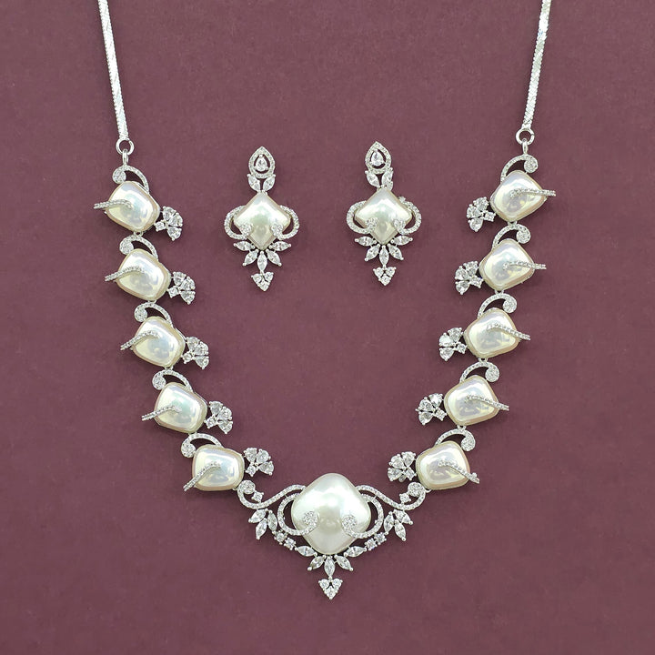 Weight: 57.0 Grams, Earring Height = 40 Mm || Width = 20 Mm,Regular Size And Adjustable,Trendy Look,2 Tone Plating,Rhodium Plating,American Diamond Necklace Set