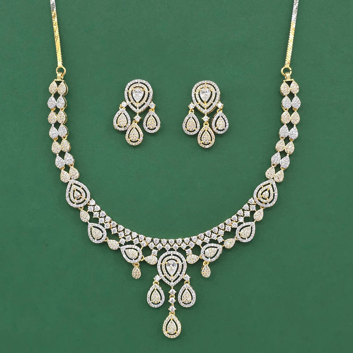 442304 Cz Classic Necklace Set With 2 Tone Rhodium Plating