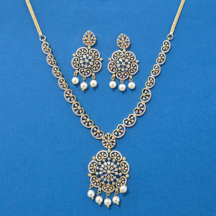 Weight: 44.0 Grams, Earring Height = 50 mm || Width = 25 mm,Regular Size And Adjustable,Bollywood Look,Black Rose Plating,2 Tone Plating,Rhodium Plating,American Diamond Necklace Set