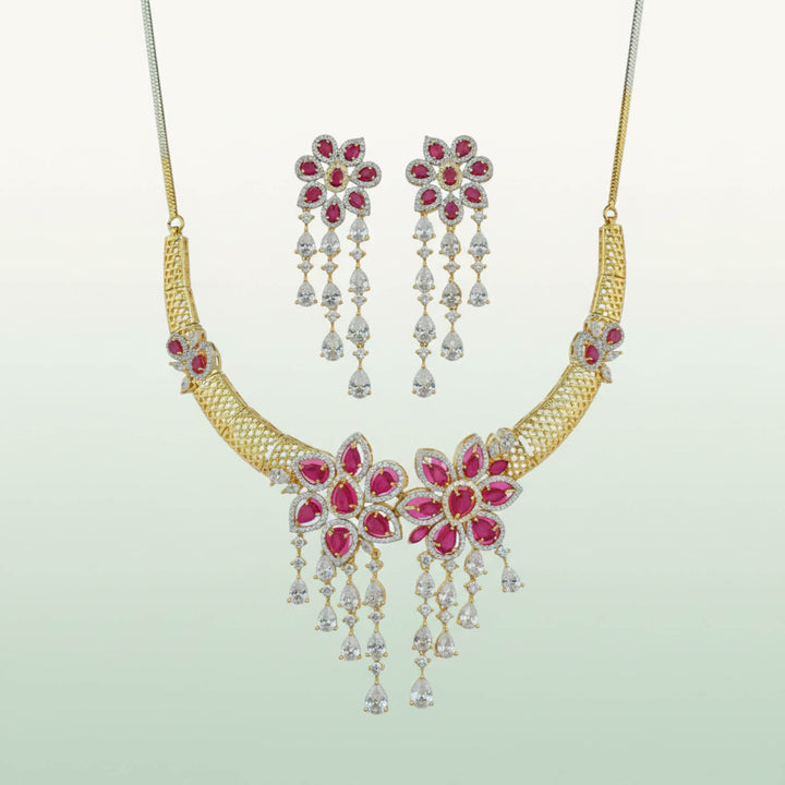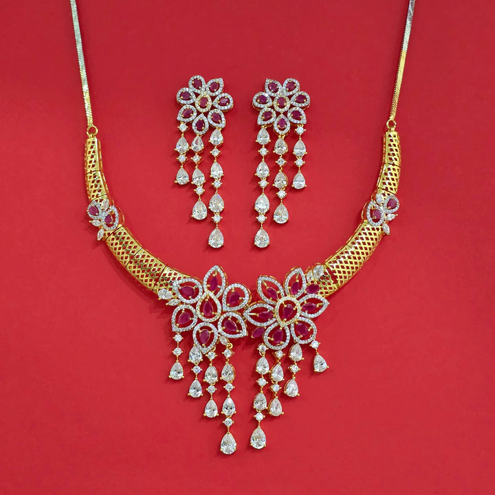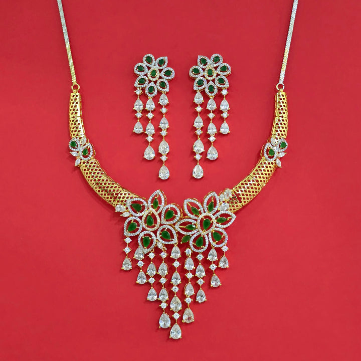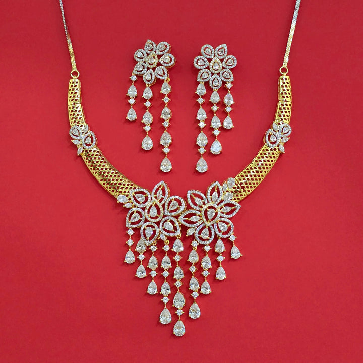 Weight: 70.0 Grams, Earring Height = 73 Mm || Width = 24 Mm,Regular Size And Adjustable,Trendy Look,Gold Plating,American Diamond Necklace Set