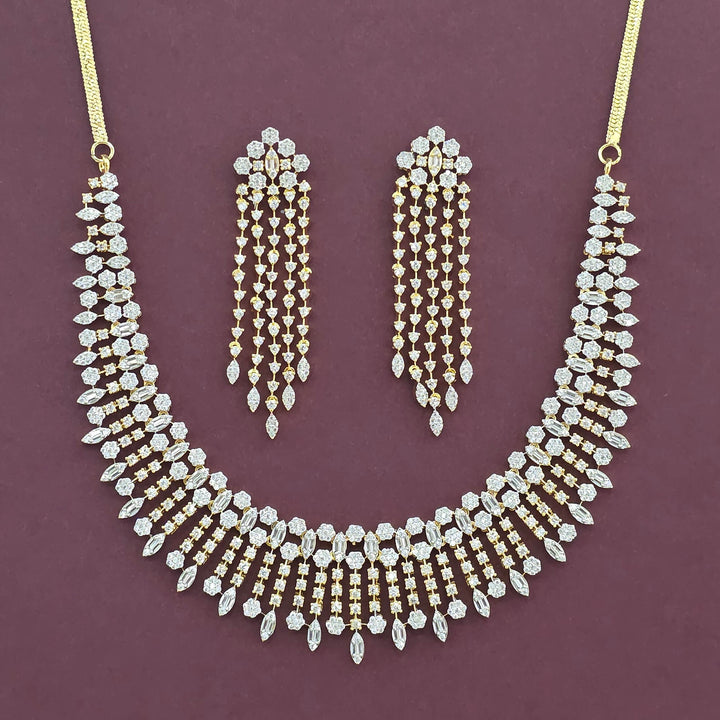 441799 Cz Classic Necklace Set With Mehndi 2 Tone Rhodium Plating