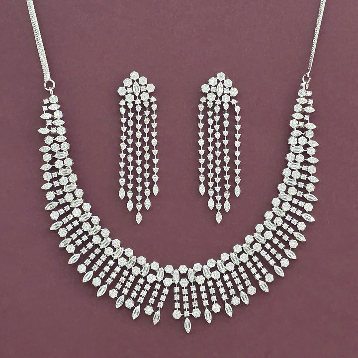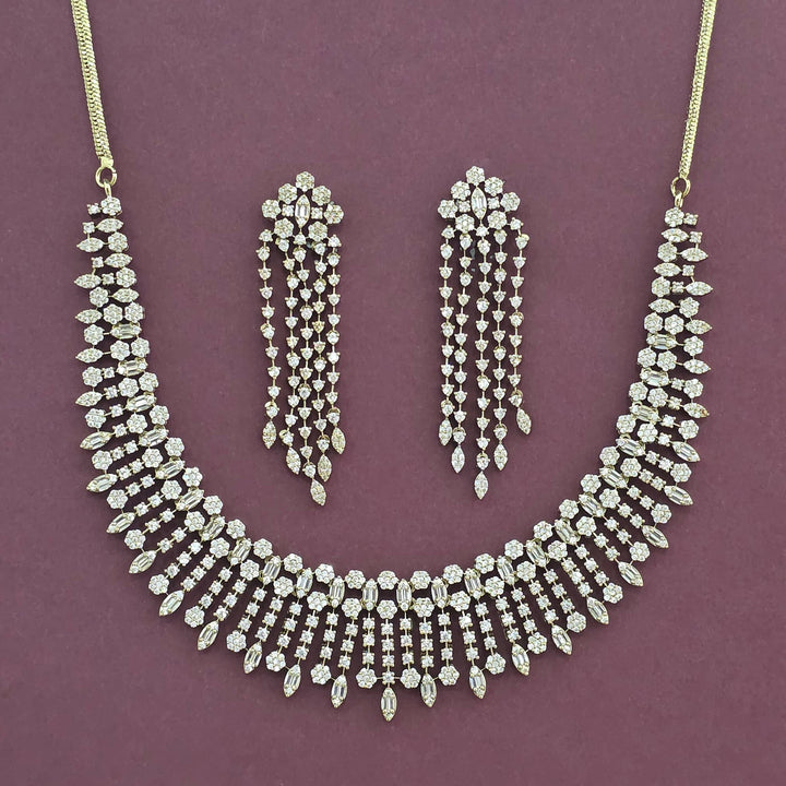 Weight: 65.0 Grams, Earring Height = 70 Mm || Width = 16 Mm,Regular Size And Adjustable,Bollywood Look,Mehndi Plating,2 Tone Plating,Rhodium Plating,American Diamond Necklace Set