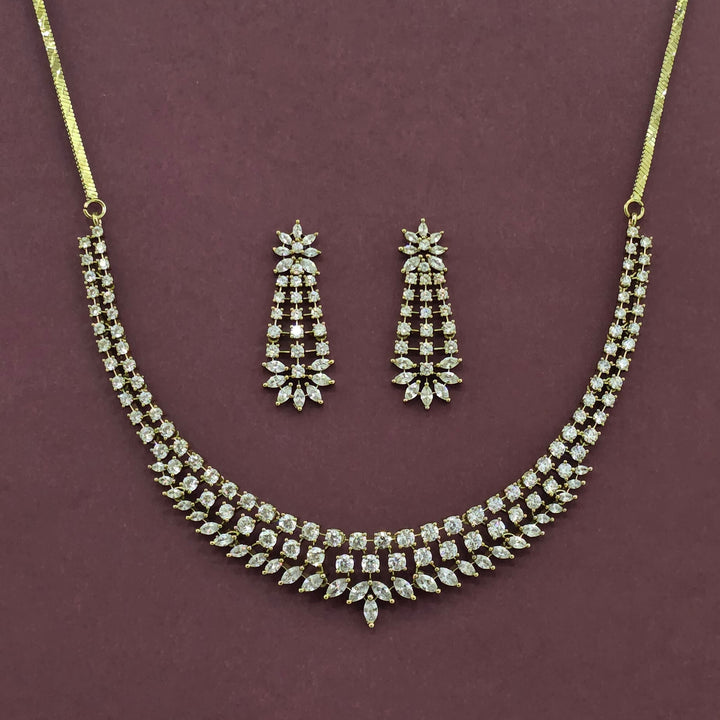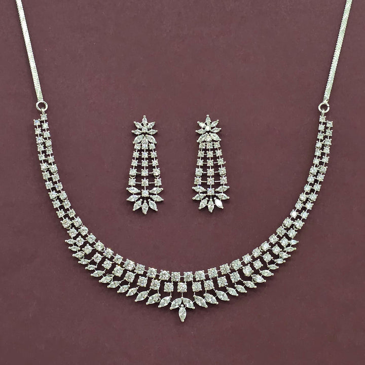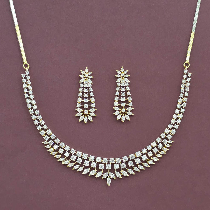 442006 Cz Classic Necklace Set With Mehndi 2 Tone Rhodium Plating