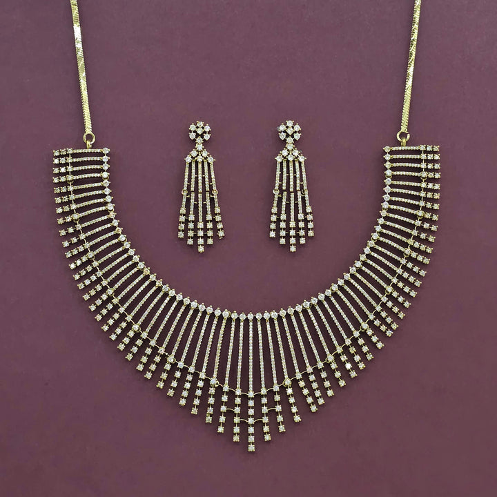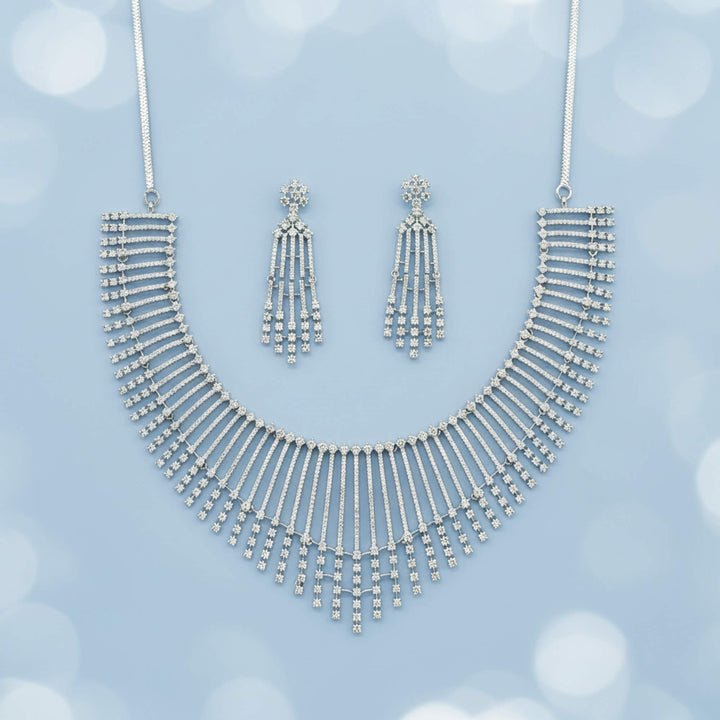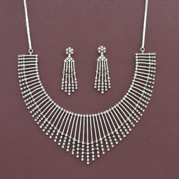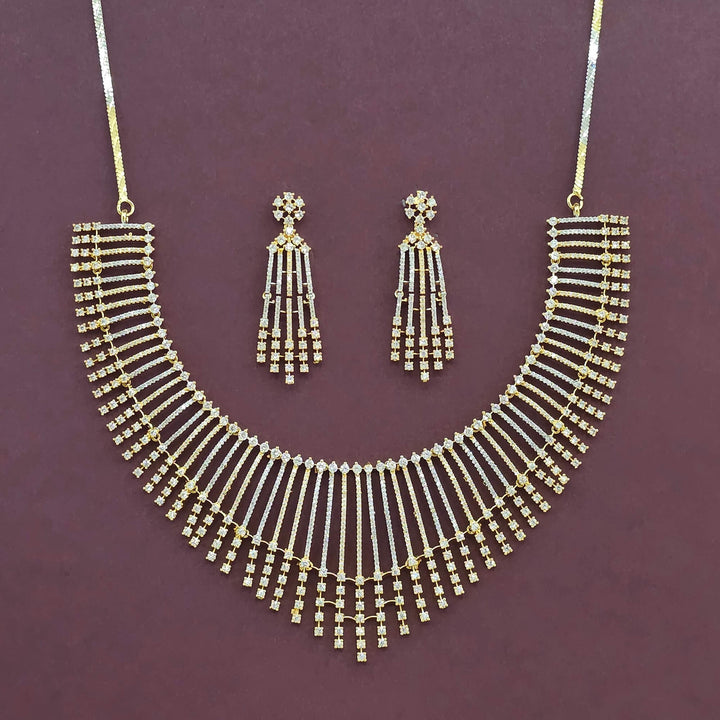 Weight: 74.0 Grams, Earring Height = 52 Mm || Width = 18 Mm,Regular Size And Adjustable,Trendy Look,Mehndi Plating,2 Tone Plating,Rhodium Plating,American Diamond Necklace Set