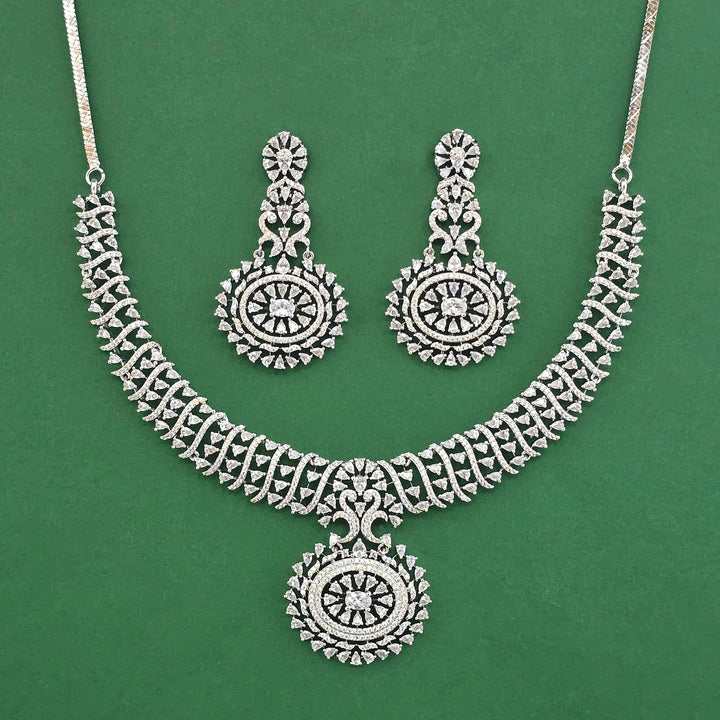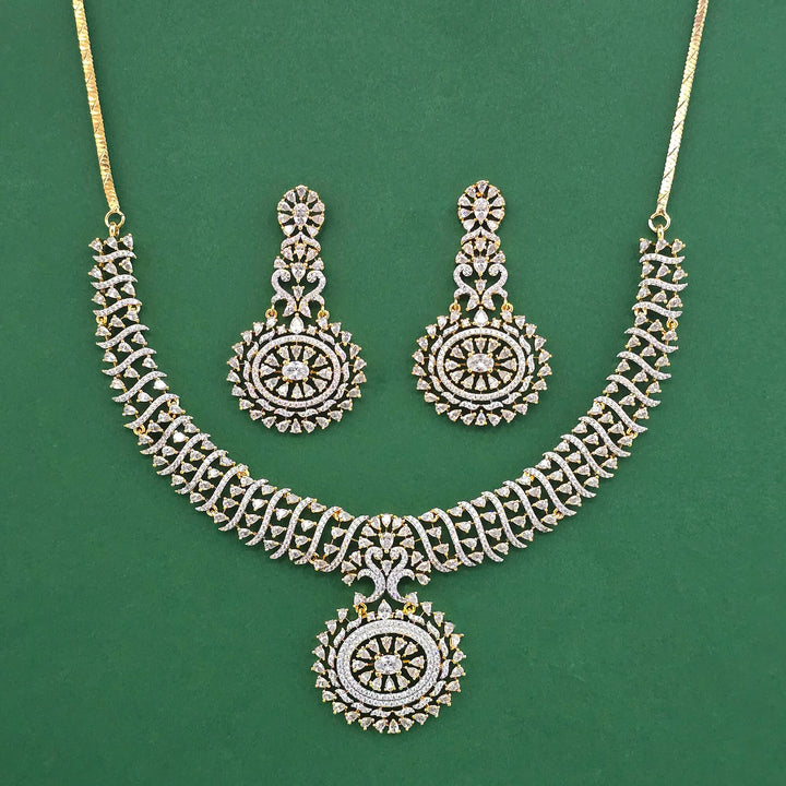 Weight: 60.0 Grams, Earring Height = 55 Mm || Width = 30 Mm,Regular Size And Adjustable,Bollywood Look,Mehndi Plating,2 Tone Plating,Rhodium Plating,American Diamond Necklace Set
