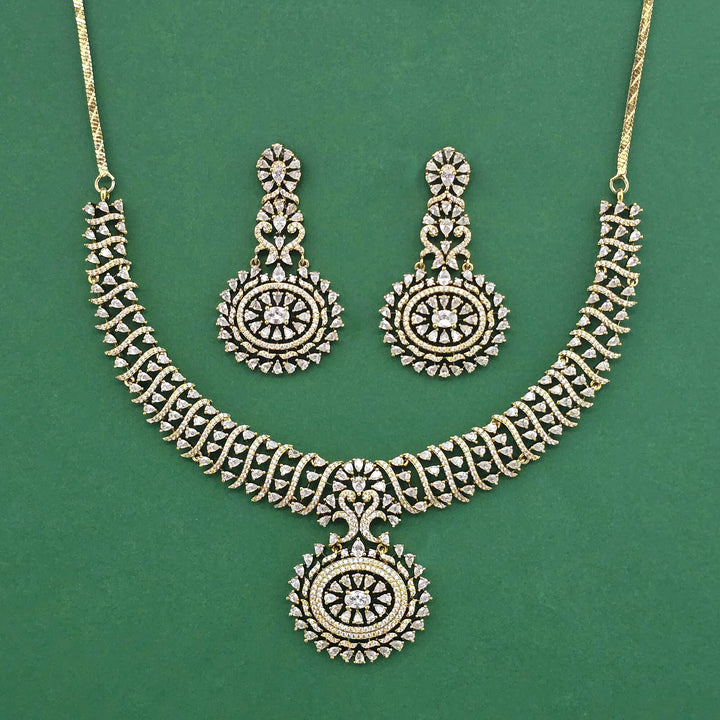 442021 Cz Classic Necklace Set With Mehndi 2 Tone Rhodium Plating