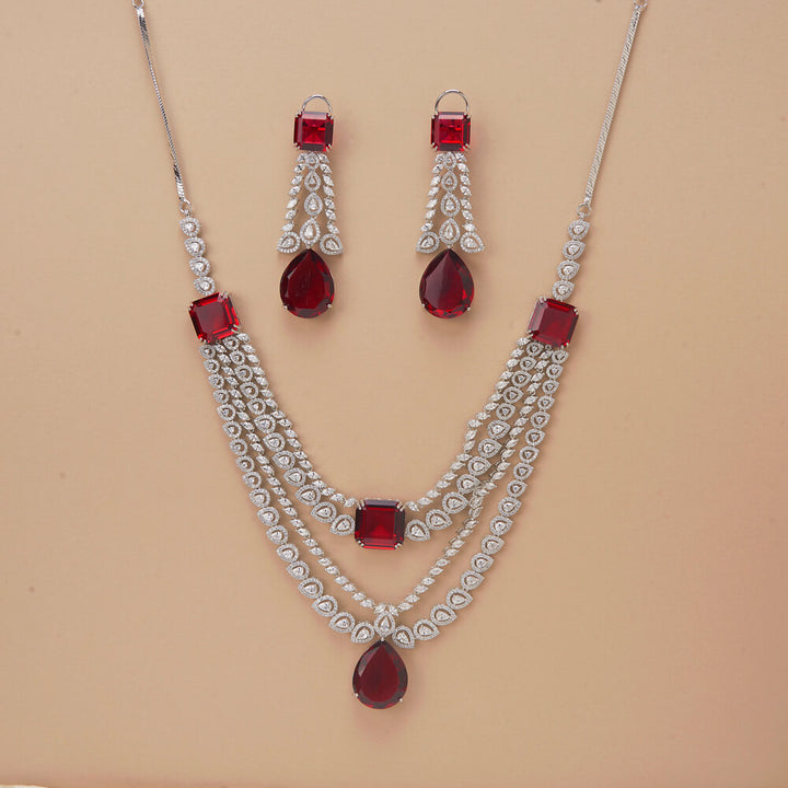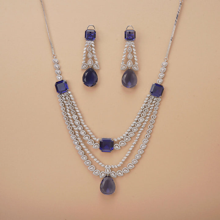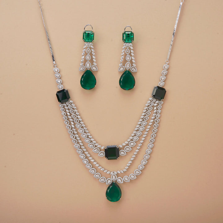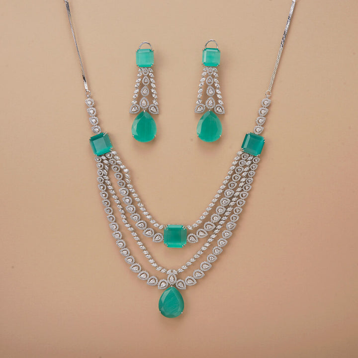 437154 Cz Classic Necklace Set With Rhodium Plating