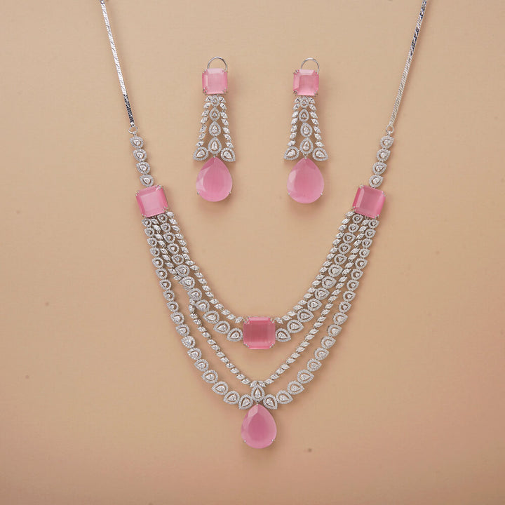 Weight: 103.0 Grams, Regular Size And Adjustable,Handmade Design,American Diamond Necklace Set