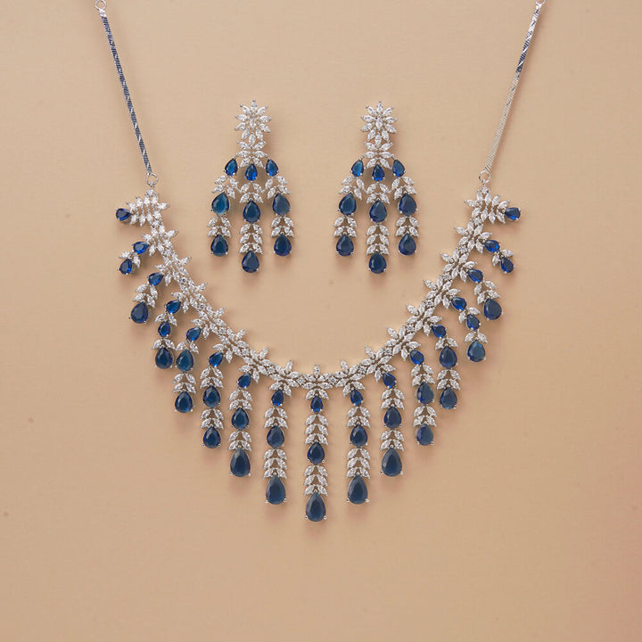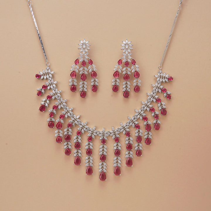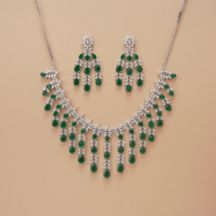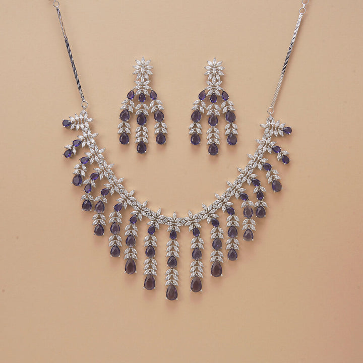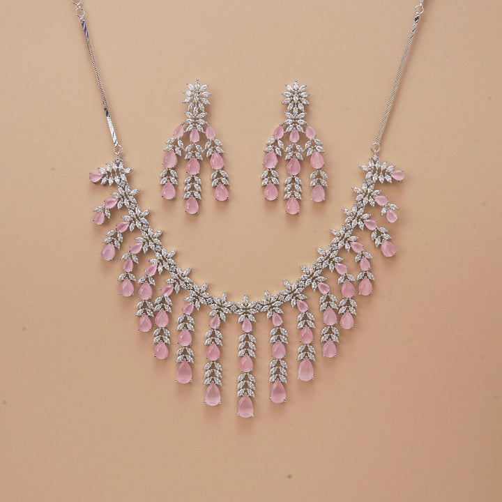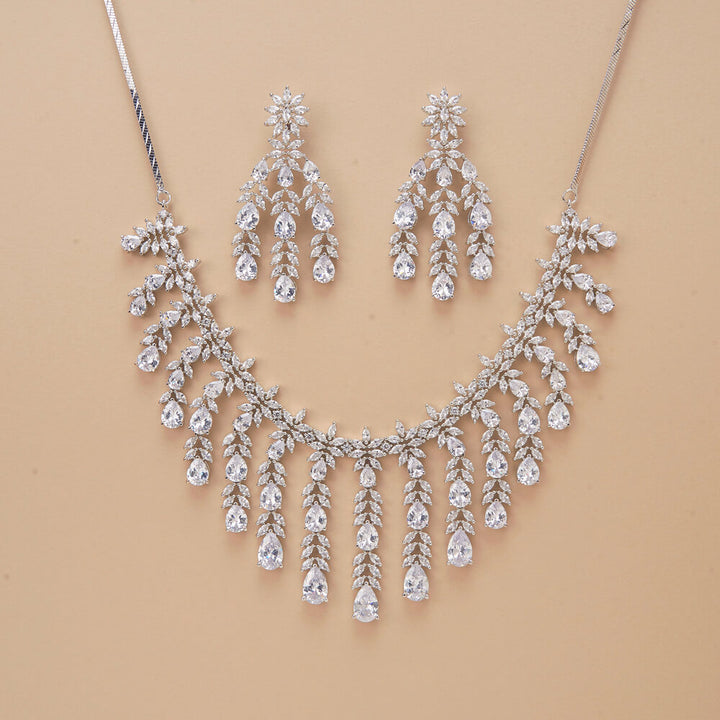 437171 Cz Classic Necklace Set With Rhodium Plating