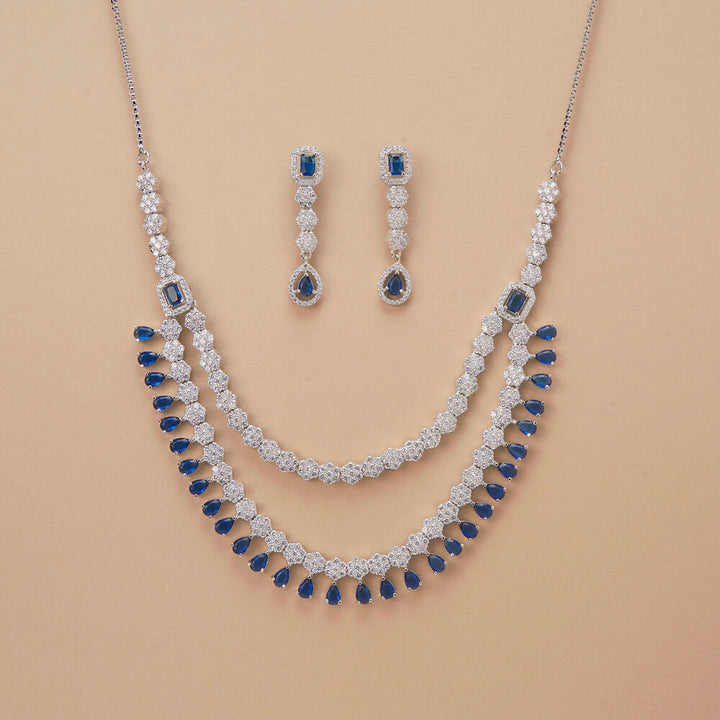 437188 Cz Classic Necklace Set With Rhodium Plating