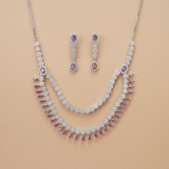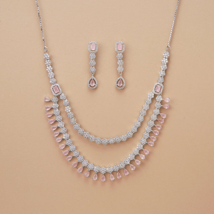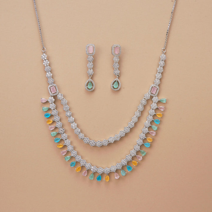 Weight: 55.0 Grams, Regular Size And Adjustable,Delicate Design,American Diamond Necklace Set