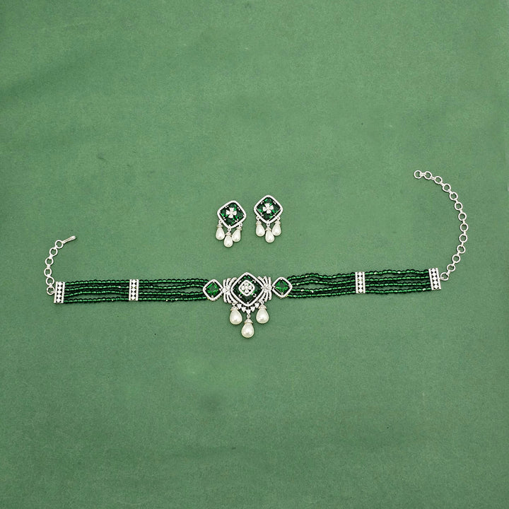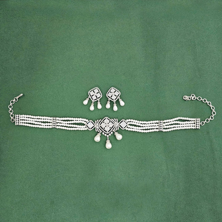 438453 Cz Classic Necklace Set With Rhodium Plating