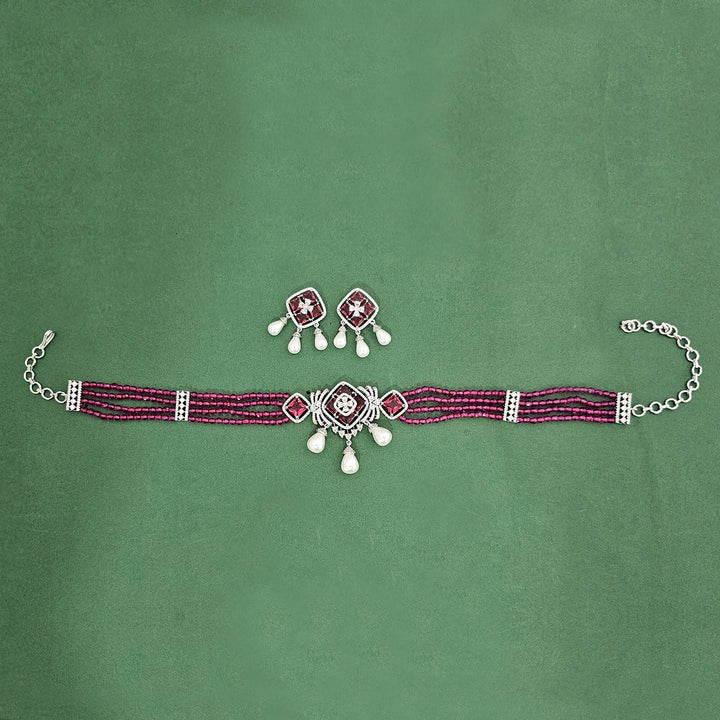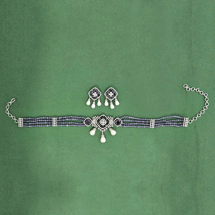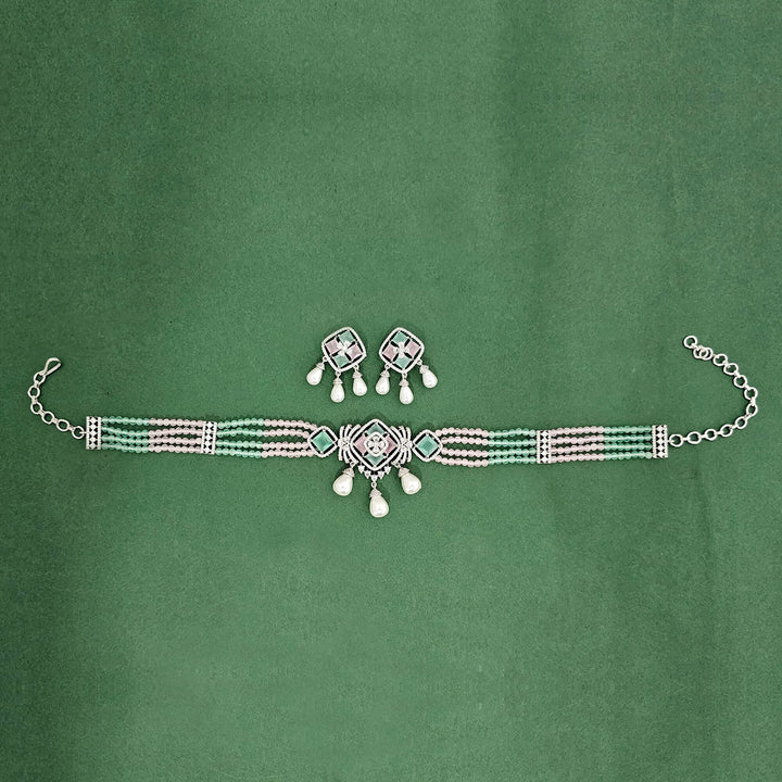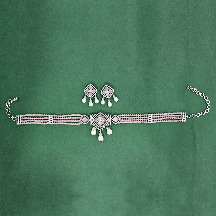 Weight: 40.0 Grams, Earring Height = 30 mm || Width = 20 mm,Regular Size And Adjustable,Choker Necklace,American Diamond Necklace Set