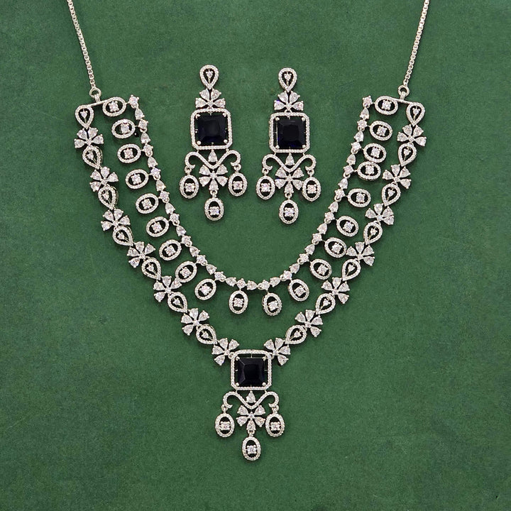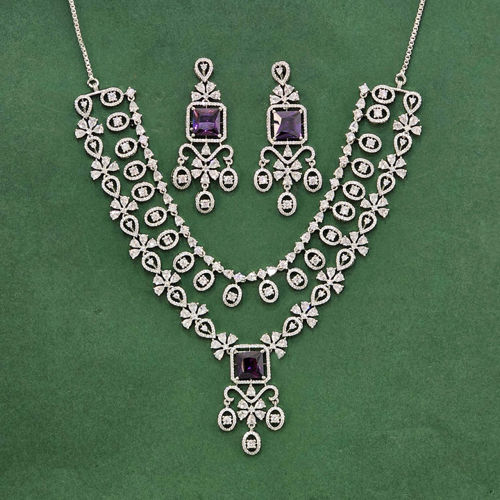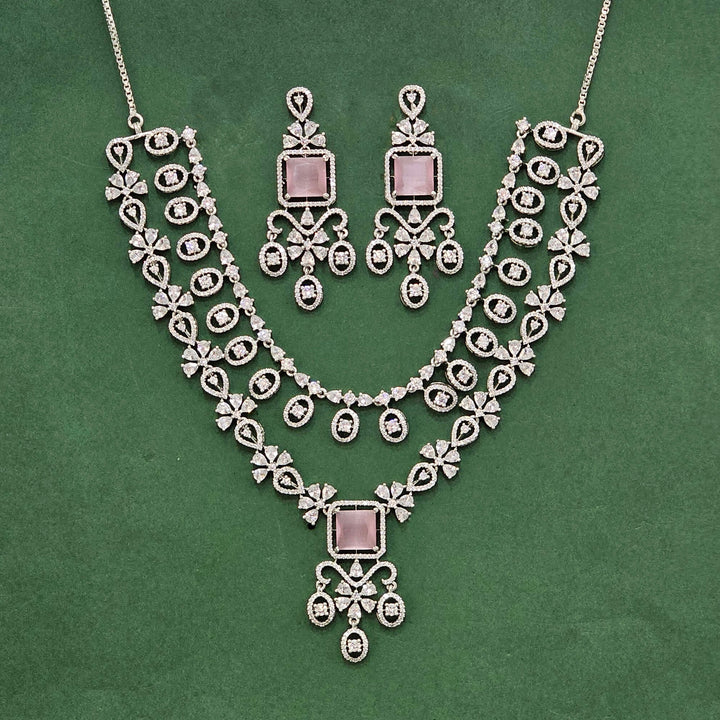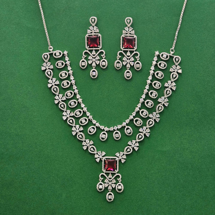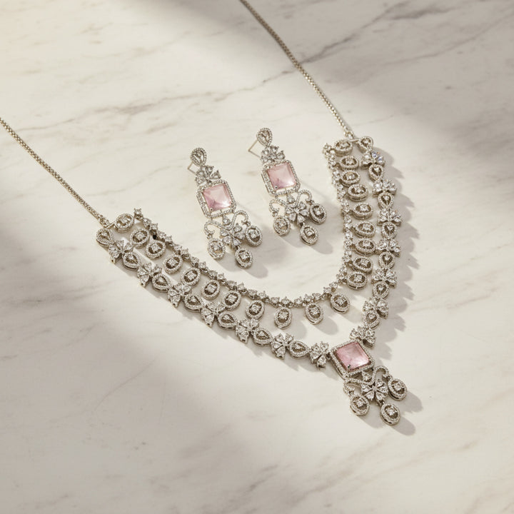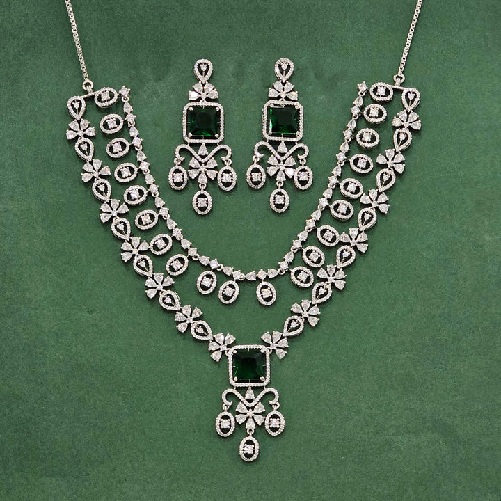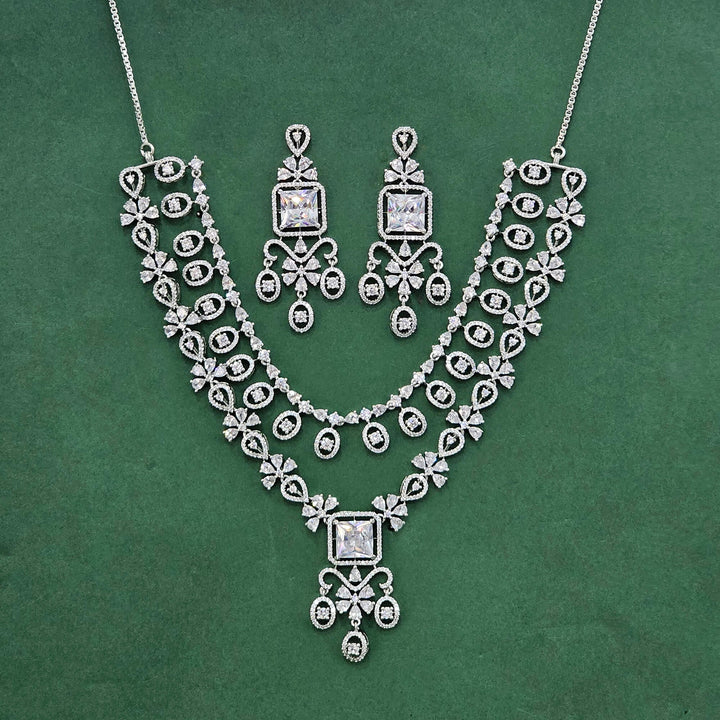 438487 Cz Classic Necklace Set With Rhodium Plating
