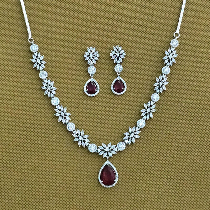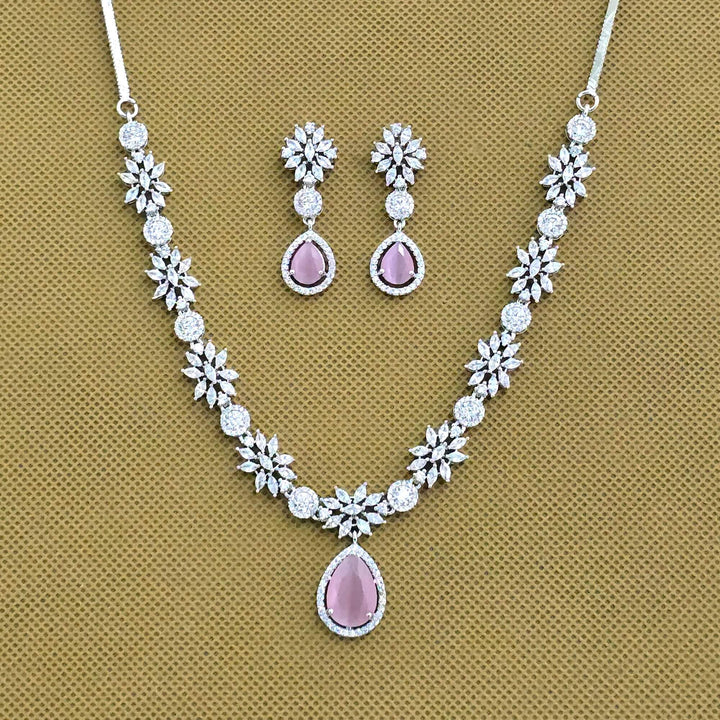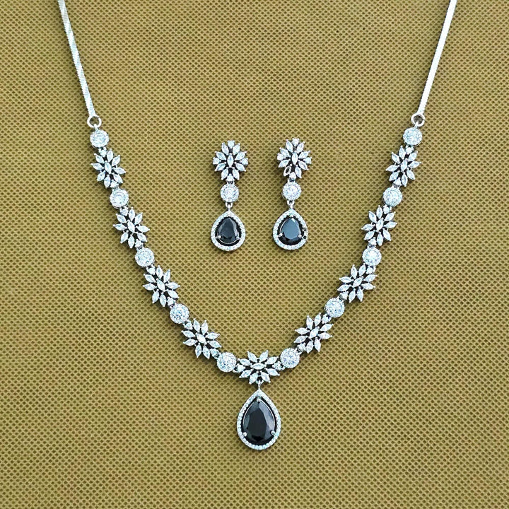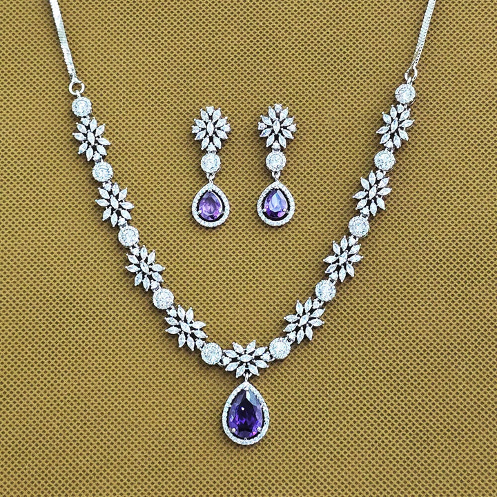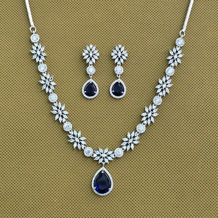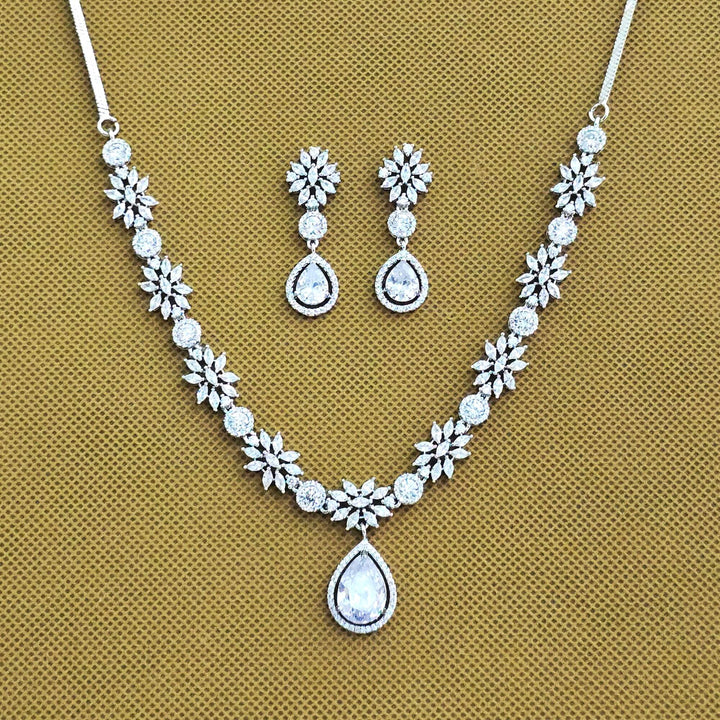 438723 Cz Classic Necklace Set With Rhodium Plating