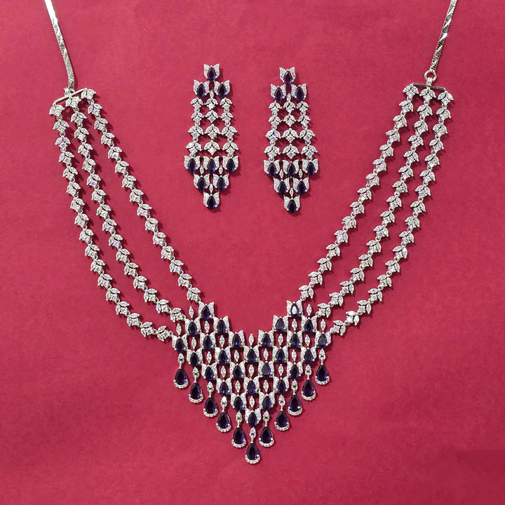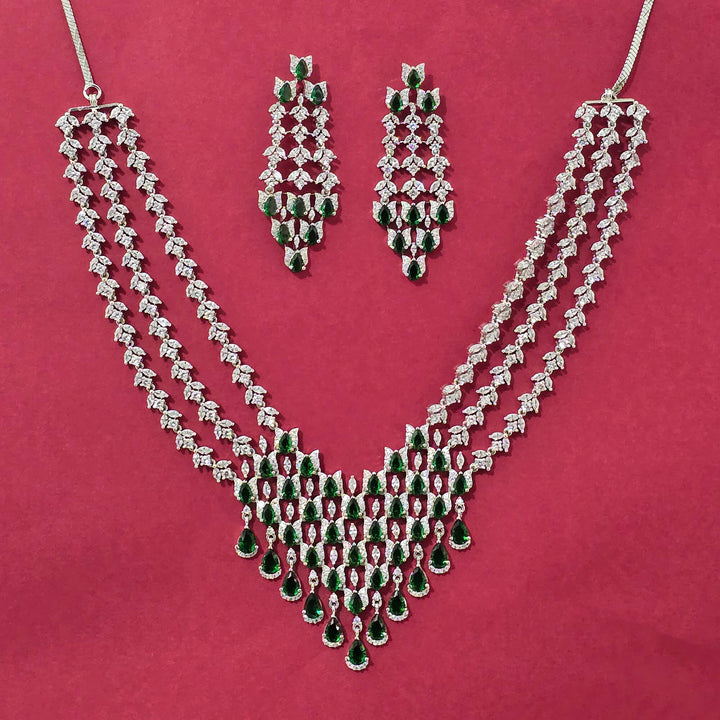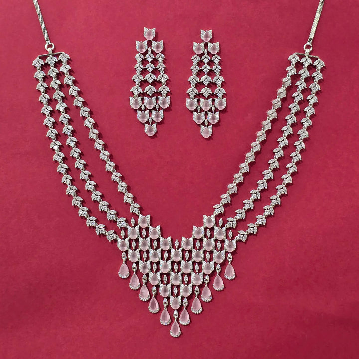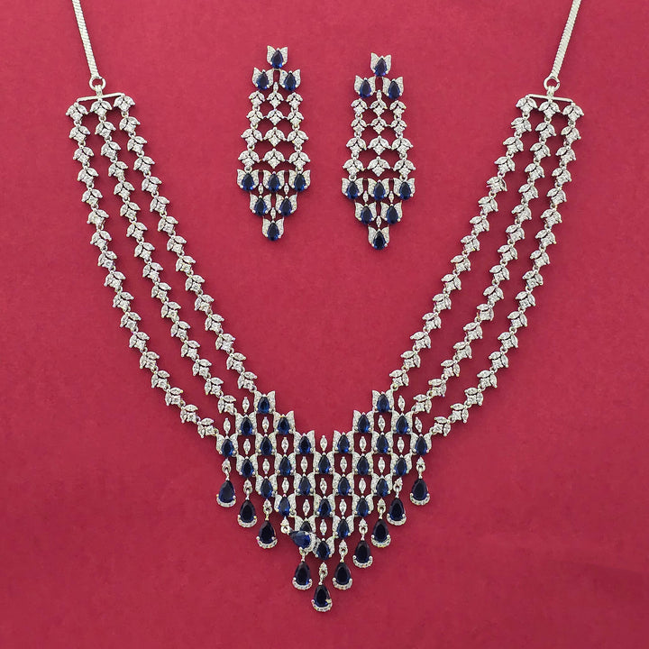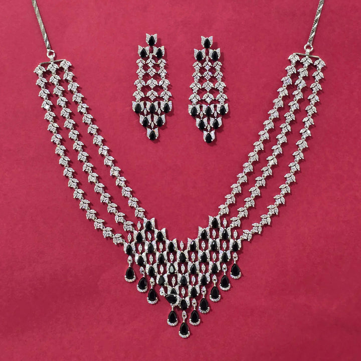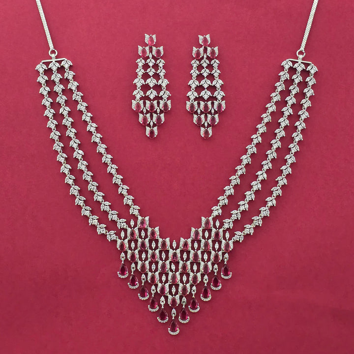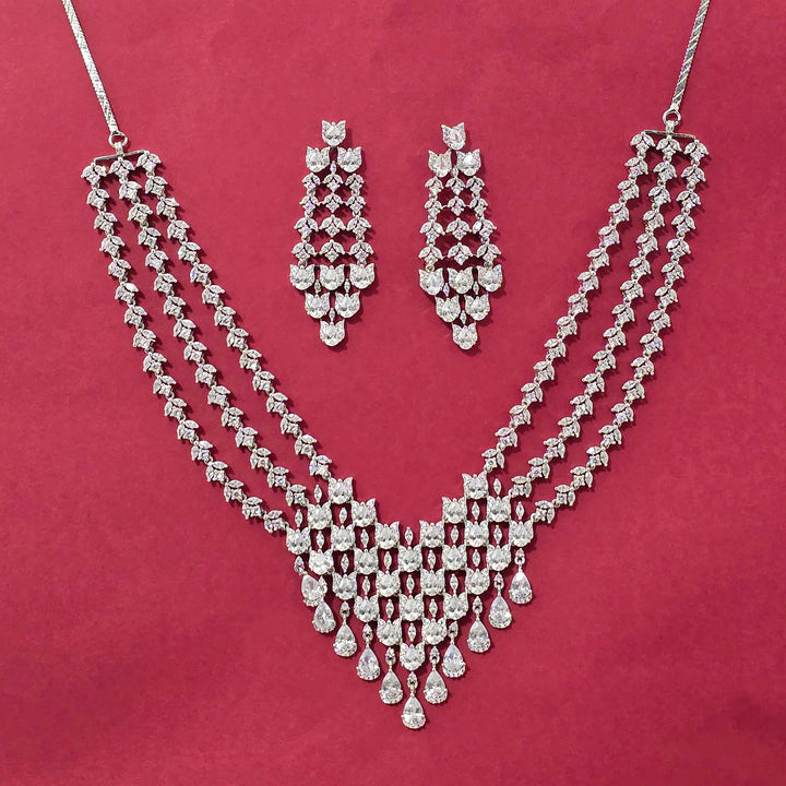 Weight: 88.0 Grams, Earring Height = 63 mm || Width = 25 mm,Regular Size 12 Inches With Adjustable Option,Elegant Look,Rhodium Plating,American Diamond Necklace Set