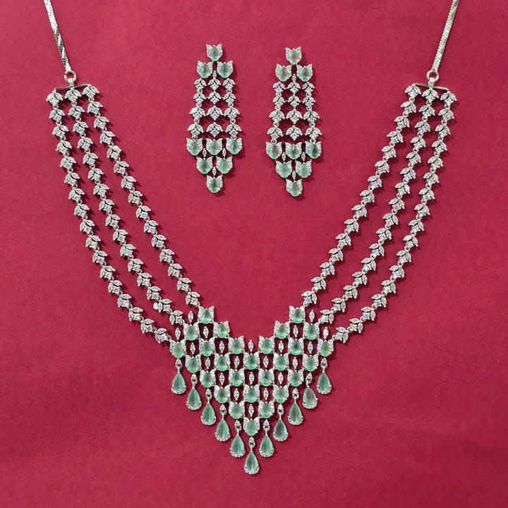 440559 Cz Classic Necklace Set With Rhodium Plating
