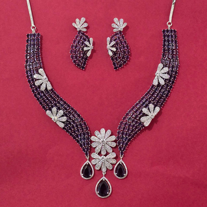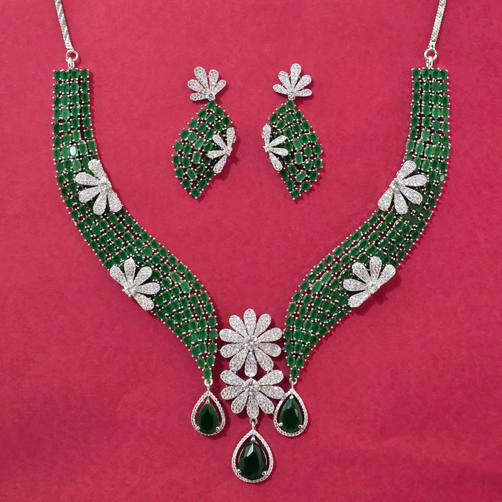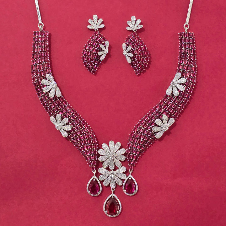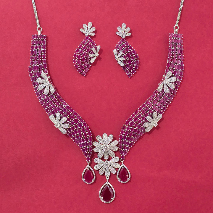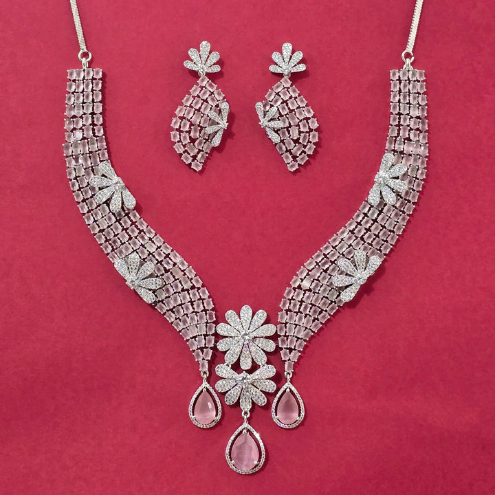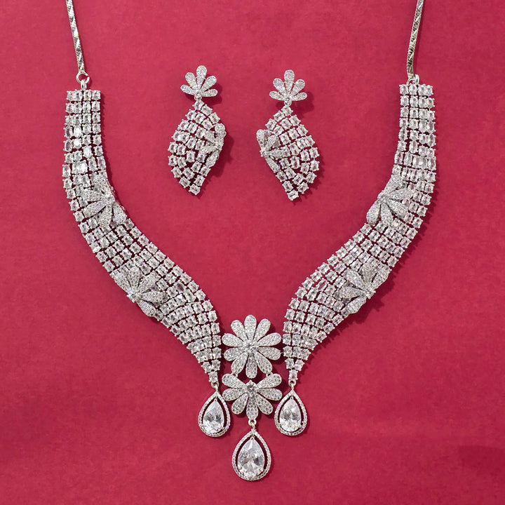 440561 Cz Classic Necklace Set With Rhodium Plating