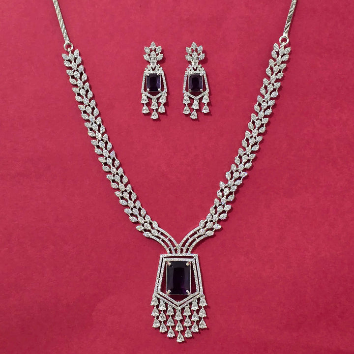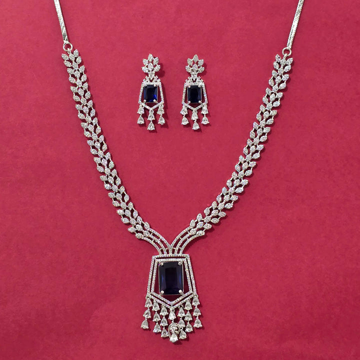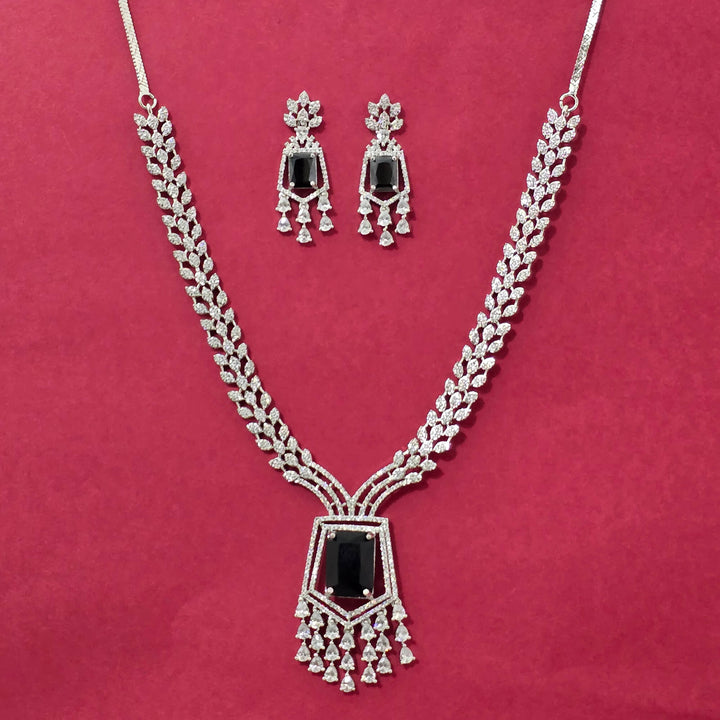 Weight: 47.0 Grams, Earring Height = 40 mm || Width = 15 mm,Regular Size And Adjustable,Elegant Look,Rhodium Plating,American Diamond Necklace Set