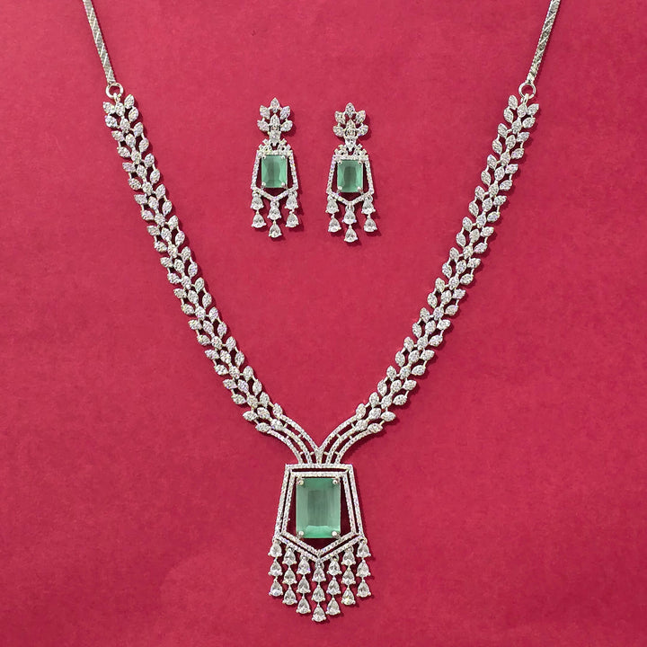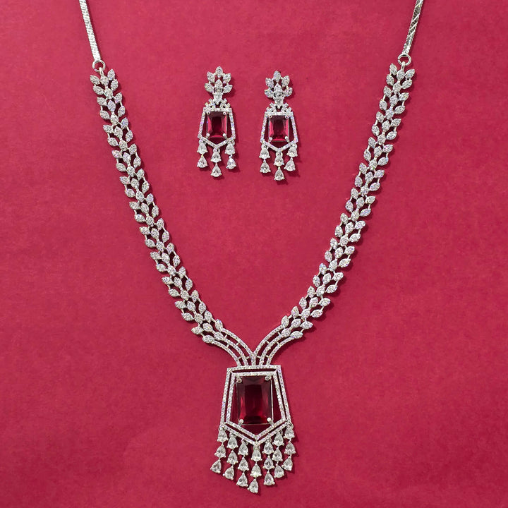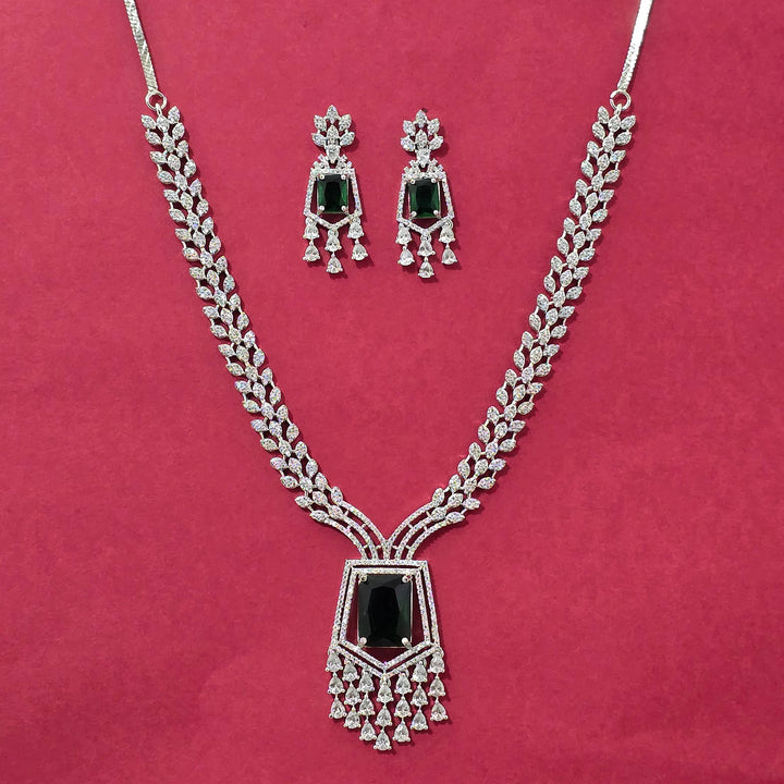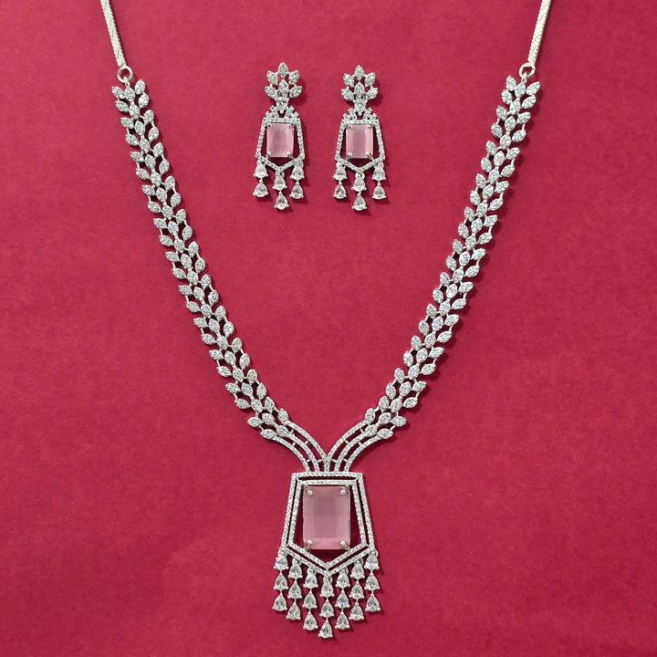440590 Cz Classic Necklace Set With Rhodium Plating