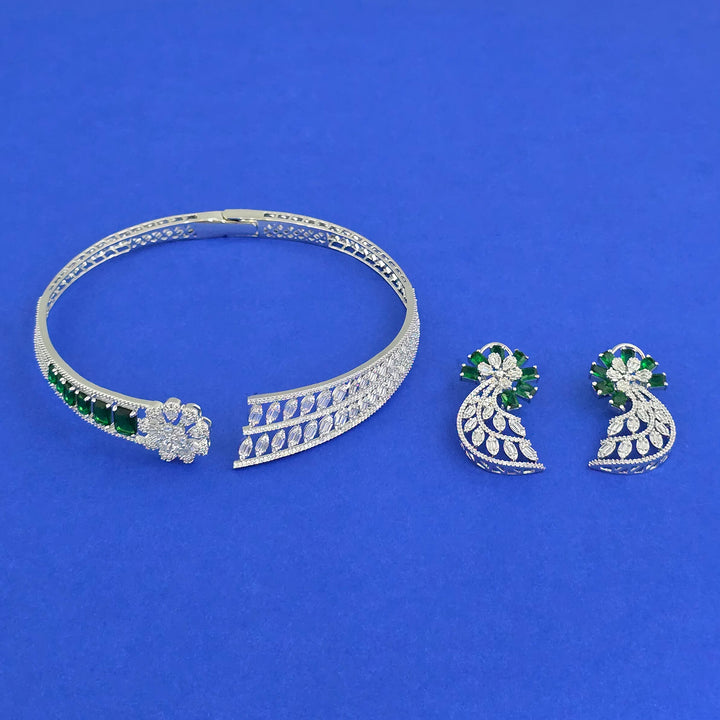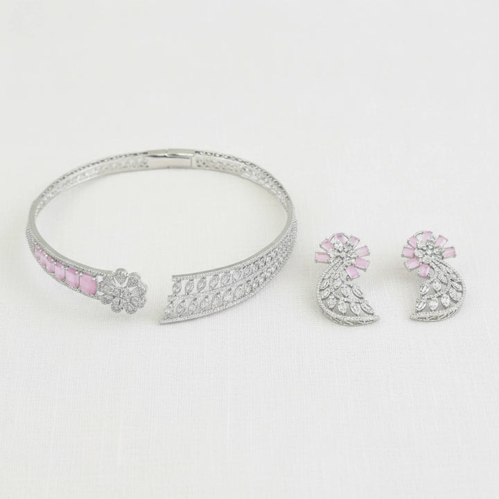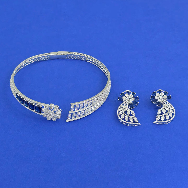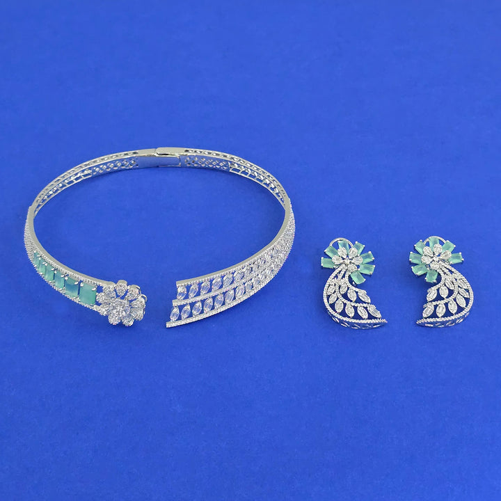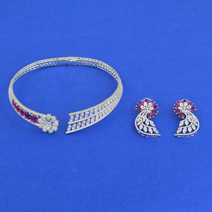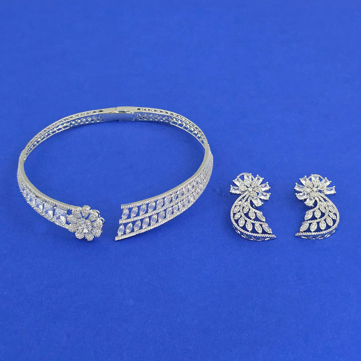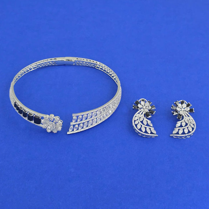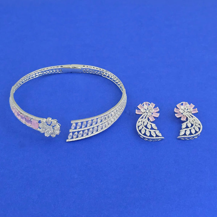 Weight: 61.0 Grams, Earring Height = 42 Mm || Width = 25 Mm,Openable Necklace,Necklace In Side Size 4.5 Inch,Rhodium Plating,American Diamond Necklace Set