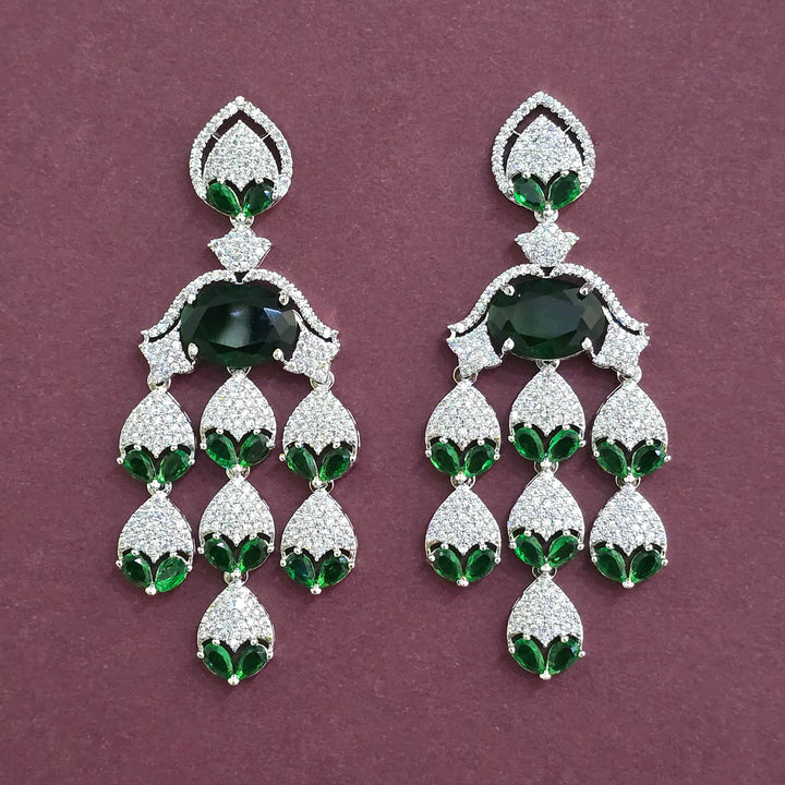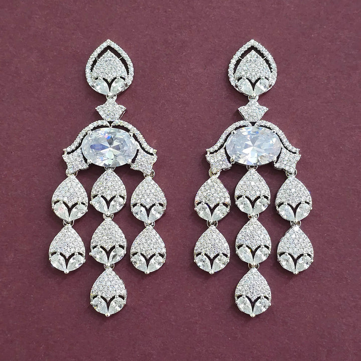 Weight: 25.0 Grams, Height = 70 Mm || Width = 30 Mm,Trendy Look,Rhodium Plating,American Diamond Earring