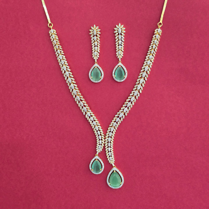 Weight: 54.0 Grams, Earring Height = 58 mm || Width = 15 mm,Regular Size And Adjustable,Elegant Look,2 Tone Plating,American Diamond Necklace Set