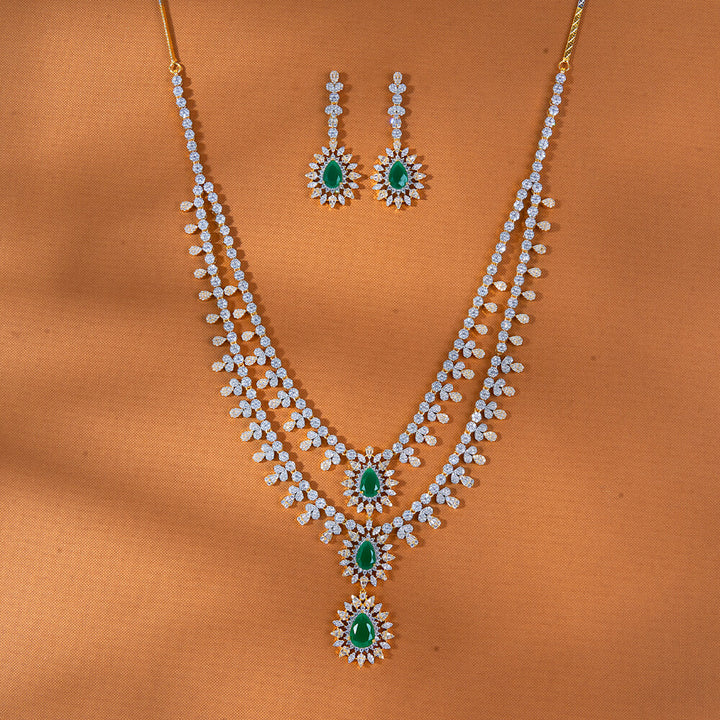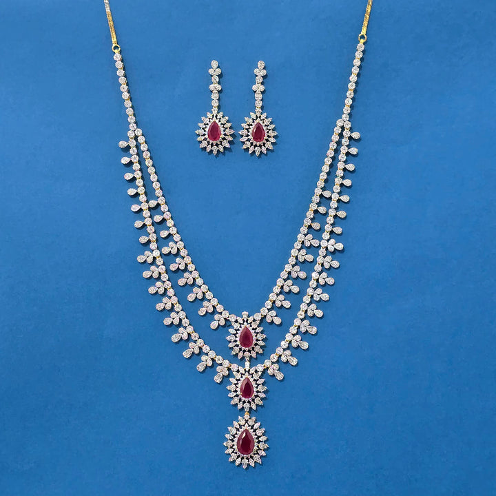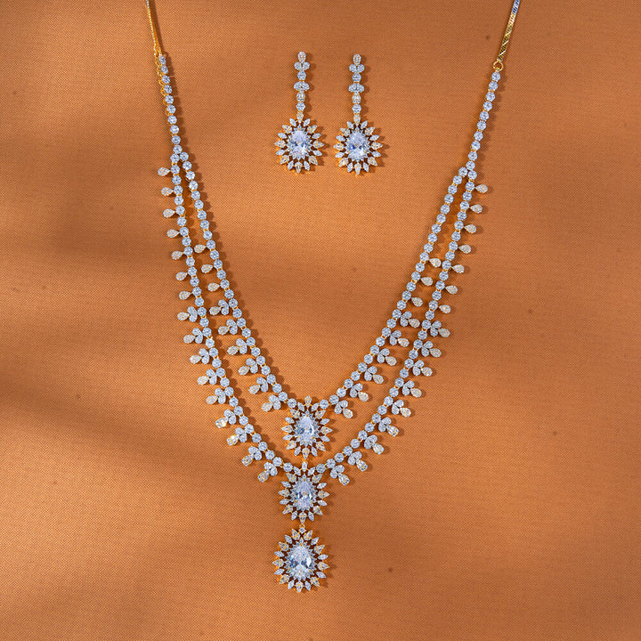 Weight: 100.0 Grams, Earring Height = 52 mm || Width = 24 mm,Regular Size 12 Inches With Adjustable Option,2 Tone Plating,American Diamond Necklace Set